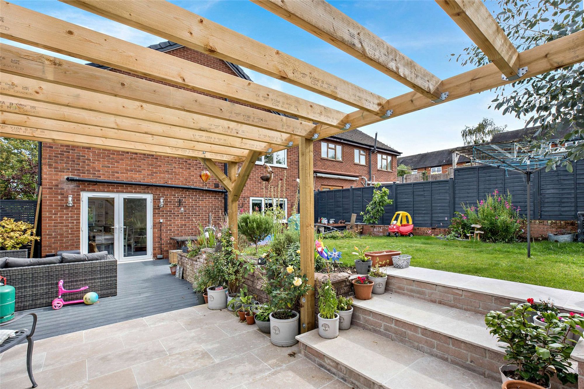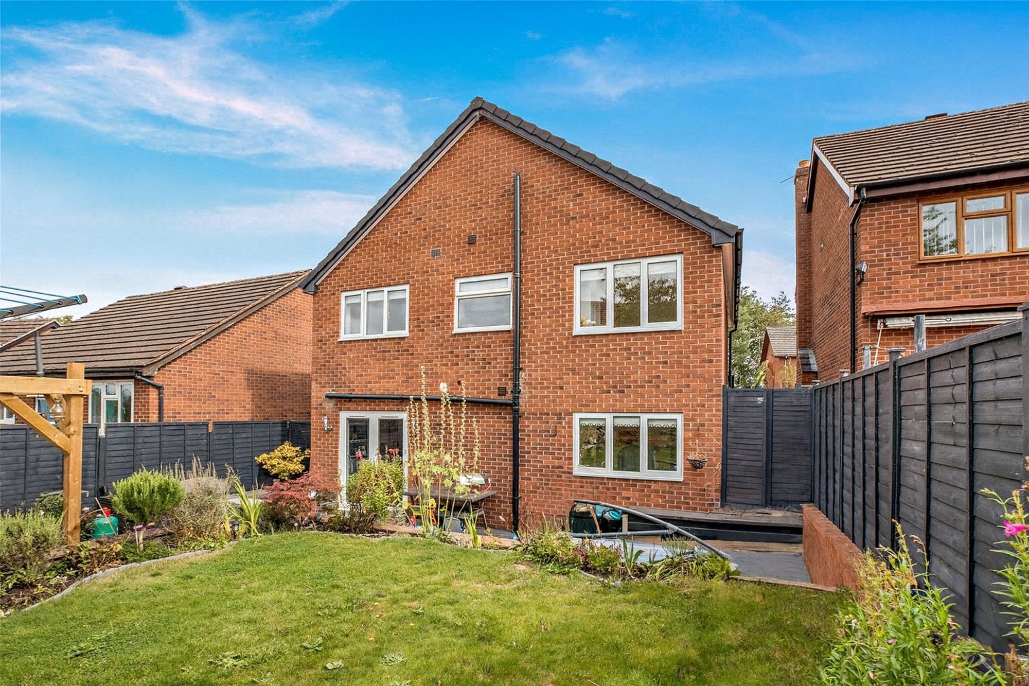 This family home has been transformed by the current owner who has completely renovated and remodelled the house to a high standard throughout, looking after every detail. The work has included new electrics, oak veneer doors, upgraded bathrooms, and a landscaped garden with composite decking and Dijon limestone patio beneath a pergola. A Worcester combi boiler is located upstairs. The loft has been boarded for storage and is fitted with an insulated pull-down ladder. The reception hall sets the tone for the property with its engineered oak flooring throughout the ground floor and bright modern contemporary feel. From here, doors lead to the principal living spaces, with useful storage neatly tucked beneath the staircase, offering space for appliances. The living room is positioned to the front of the house and enjoys a large window that fills the space with natural light. A wood-burning stove creates a central feature, offering warmth and character, while the modern décor ensures a fresh, inviting atmosphere. To the rear, the kitchen dining area forms the heart of the home, designed and finished to an excellent standard. This superb open-plan space is fitted with ‘Second Nature’ shaker-style cabinetry in contrasting tones, complemented by quartz worktops and a full range of integrated Neff appliances, including a wine fridge, double oven, induction hob, gas hob, and Clearwater boiling water tap. A Bosch integrated dishwasher is also fitted. A central breakfast bar with seating provides an informal spot for family life, while the dining area opens directly to the deck outside through French doors, making it ideal for both everyday living and entertaining, especially in the summer months. A door also connects this space back to the living room, enhancing the flow of the home. A cloakroom adds further practicality to the ground floor, with WC and wash hand basin. Upstairs, the principal bedroom offers a generous double with its own en-suite shower room, finished with a rainfall shower and heated towel rail. Three further bedrooms are arranged across this level, each presented in a neutral style and offering flexibility as family rooms, guest accommodation or a home office. The family bathroom is fitted with a modern white suite and contemporary tiling, including a bath with shower over. Outside, the rear garden has been beautifully landscaped, beginning with a composite decked terrace directly from the dining room – perfect for summer dining. Steps lead up to a lawn bordered by raised beds and mature planting, while a pergola and a further area of Dijon limestone paving create additional seating. A vegetable garden adds appeal for those with an interest in gardening, and the whole space is securely enclosed for privacy. What was once the integral garage has been adapted, now offering a useful storage area. Driveway parking is also provided to the front of the property. Buyers Compliance Administration Fee: In accordance with The Money Laundering Regulations 2007, Agents are required to carry out due diligence on all Clients to confirm their identity, including eventual buyers of a property. The Agents use electronic verification system to verify Clients’ identity. This is not a credit check so will have no effect on credit history though may check details you supply against any particulars on any database to which they have access. By placing an offer on a property, you agree that if your offer is accepted, subject to contract, we as Agents for the seller can complete this check for a fee of £75 inc VAT (£62.50 + VAT) per property transaction, non-refundable under any circumstance. A record of the search will be retained by the Agents