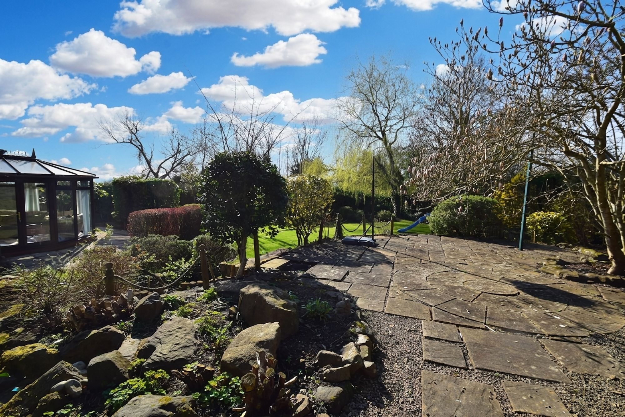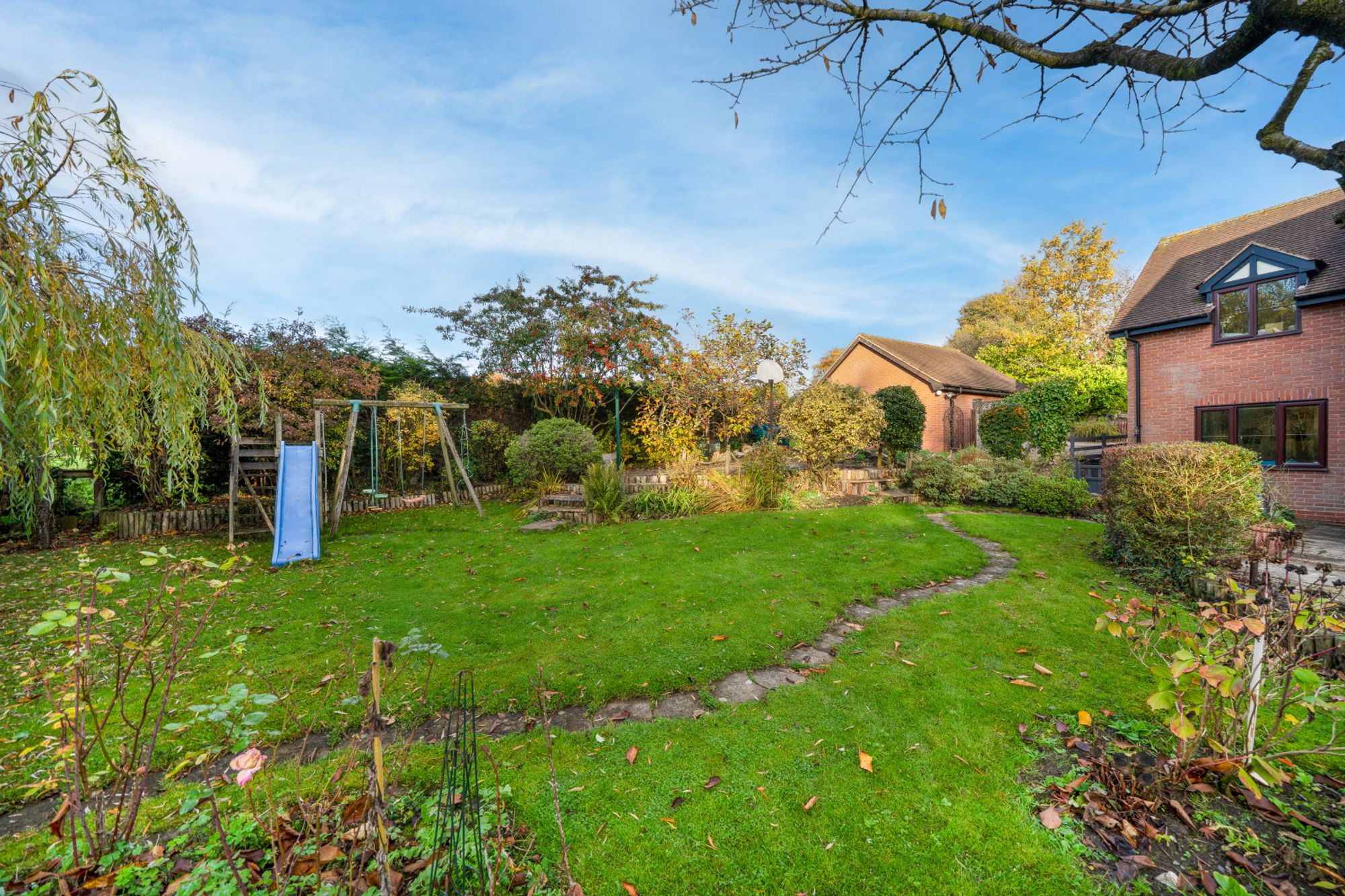 Immediately behind the property is your more formal space with patios and separate areas to enjoy throughout the day. To the Northern side of the boundary an extra plot of land has been added to the house to, give more space and to match the spacious house that is on offer.