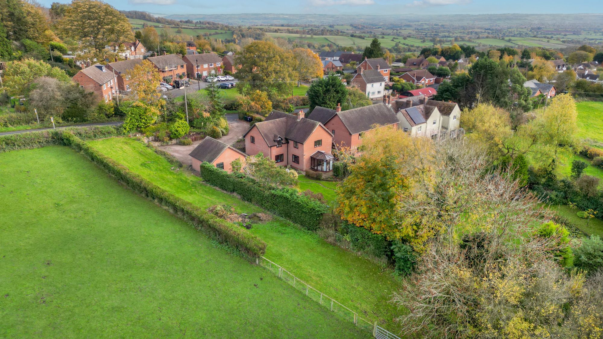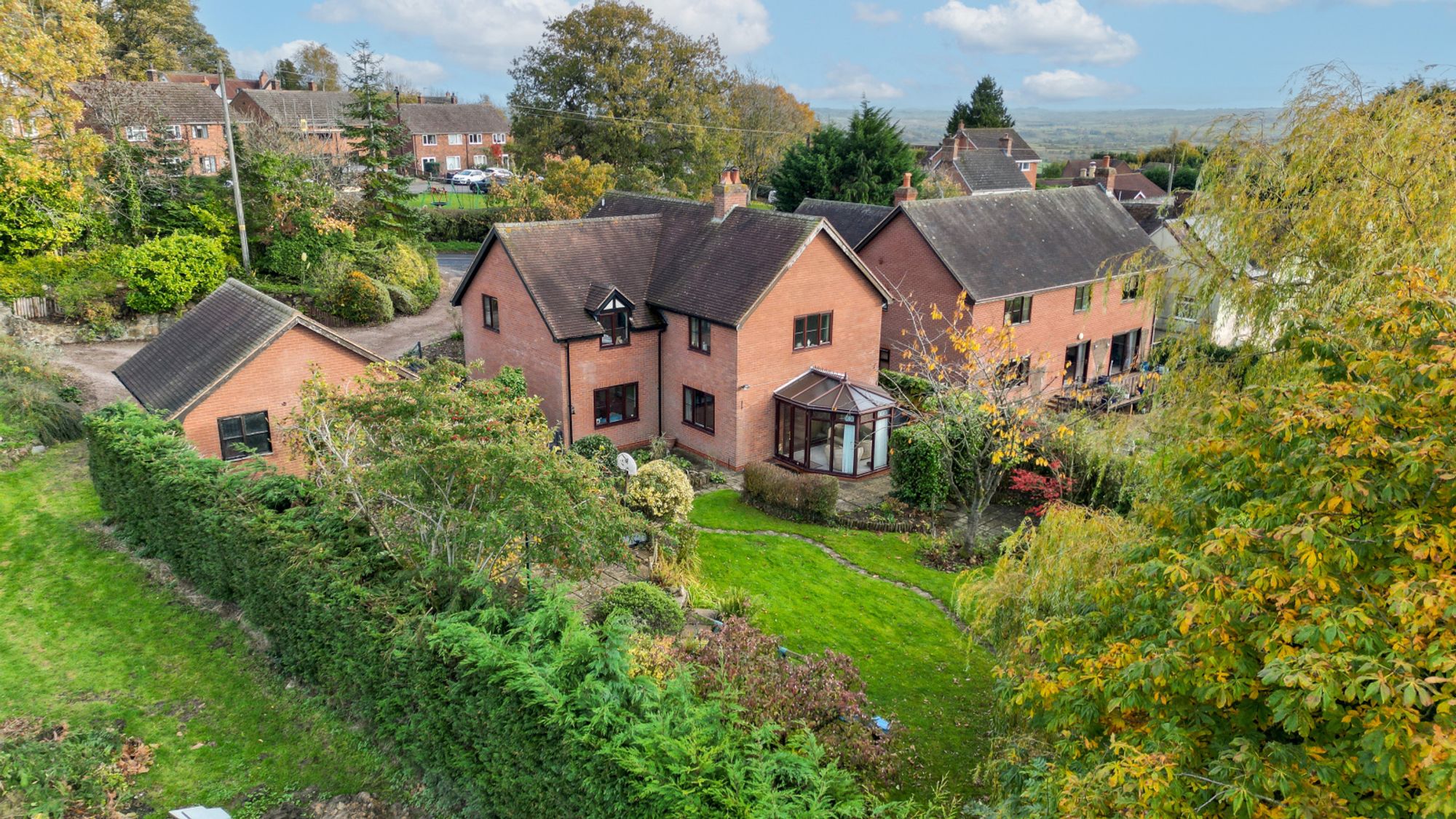 The gardens have been thoughtfully designed to complement the rural setting, with a variety of mature planting and delightful corners to explore. With the West facing garden and arable fields to the rear you have privacy but also great views and exceptional sunsets over the Clee.