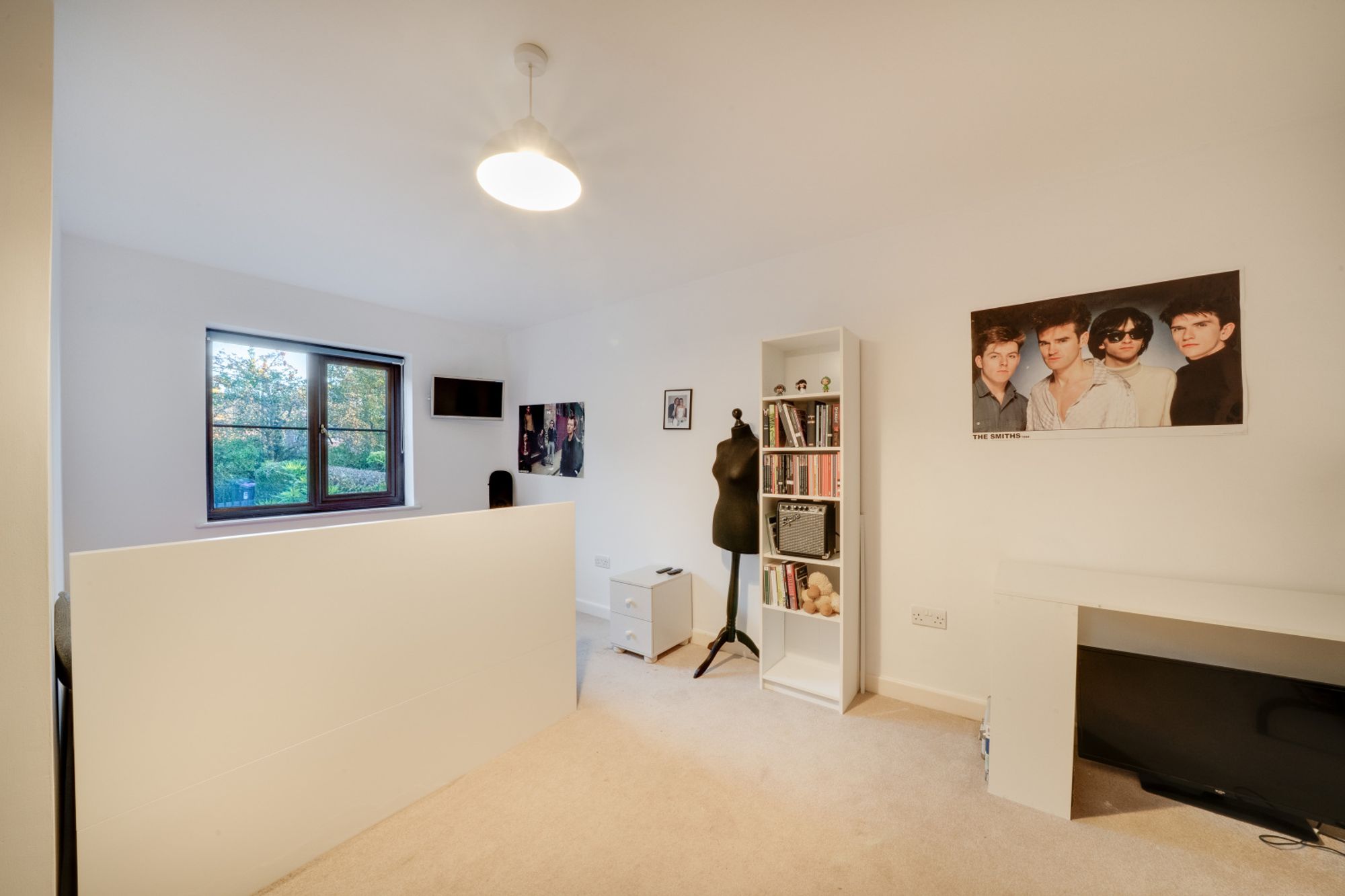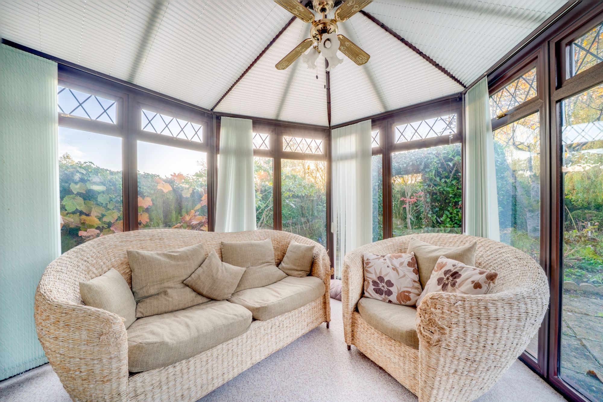 The living room is a particularly attractive space, with fireplace housing a woodburning stove and double sliding doors opening into the conservatory which overlooks the mature rear garden. This large room at the rear of the property makes the most of the views and provides a wonderful place to relax and enjoy throughout the seasons.