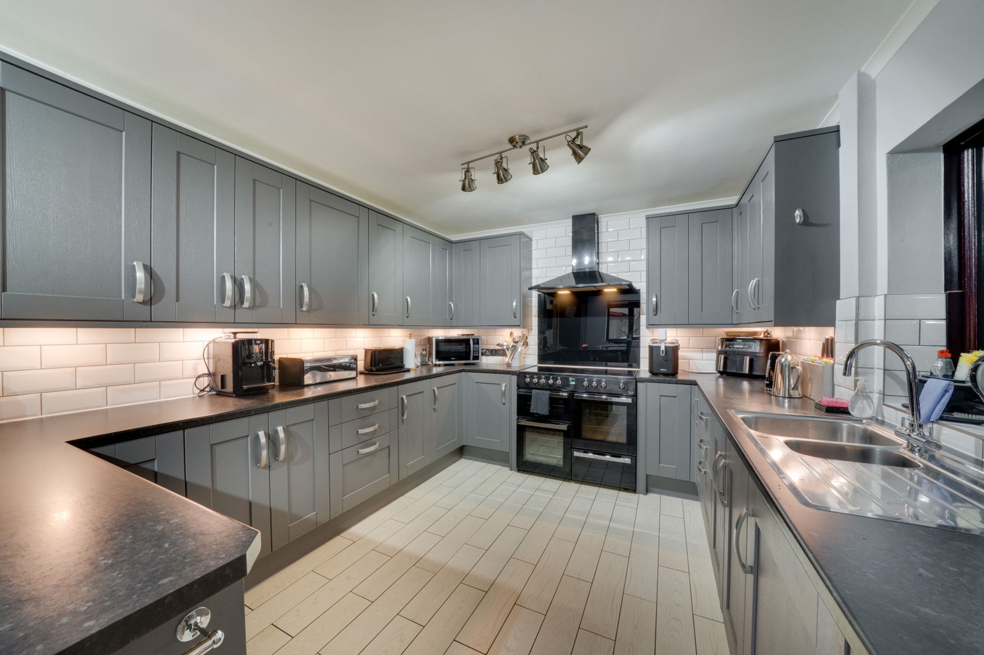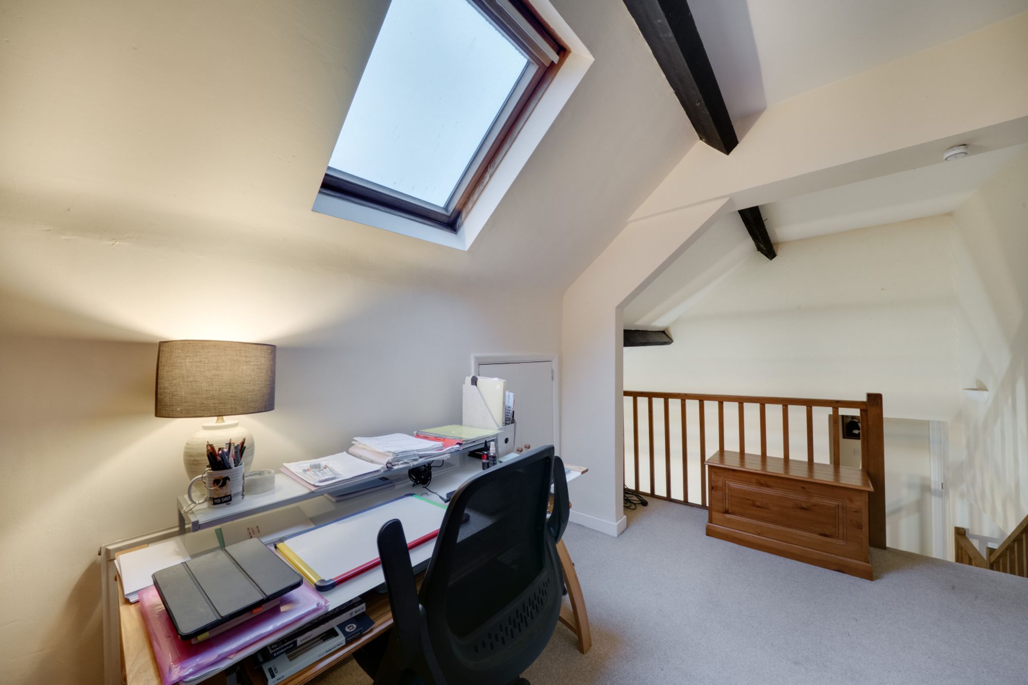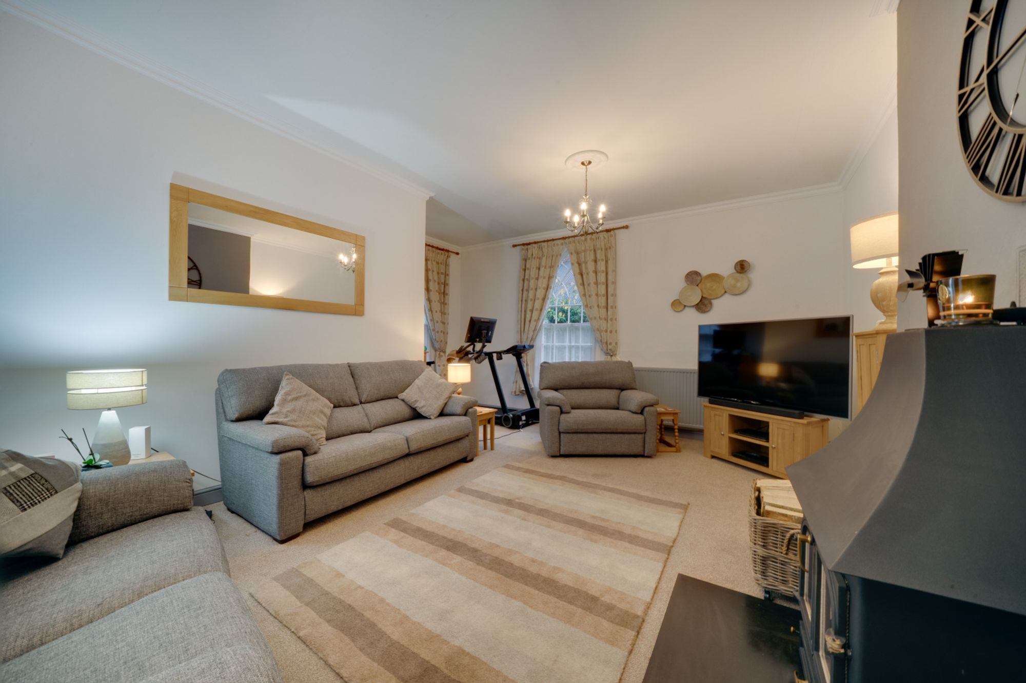 Chapel House stands in the heart of the village, a distinguished former Methodist chapel dating back to around 1865. Now a Grade II Listed home, it has been thoughtfully converted and further enhanced by the present owners, who have taken care to preserve its striking architectural character. The façade, with its arched windows and stone dressings, hints at the impressive interior where high ceilings, generous proportions and abundant natural light define the living spaces. The entrance leads into a broad and welcoming dining hall, a superb central space set beneath a vaulted ceiling, with the staircase rising to the first floor. This room flows through to the sitting room, where the original chapel windows create a bright and atmospheric setting. A wood-burning stove brings warmth and focus, making the room ideal for family living and relaxed evenings. The breakfast kitchen offers a modern contrast to the building’s heritage, fitted with a contemporary range of cabinetry and extensive work surfaces. It provides a sociable space with room for informal dining and is complemented by a separate utility room. A home office, cloakroom and useful storage areas complete the ground floor accommodation and add to the home’s flexibility. Upstairs, the galleried landing overlooks the reception space below and gives access to three comfortable bedrooms, each enjoying views or skylights that accentuate the sense of light. The bathroom has been stylishly refitted, combining modern fittings with subtle period references to create a calm and practical environment. Outside, the property benefits from an enclosed rear garden, offering level lawns, mature trees and planting, along with a greenhouse, sheds and a pergola seating area at the far end. To the front, a gated driveway provides secure and ample parking, with additional storage adjacent to the chapel.