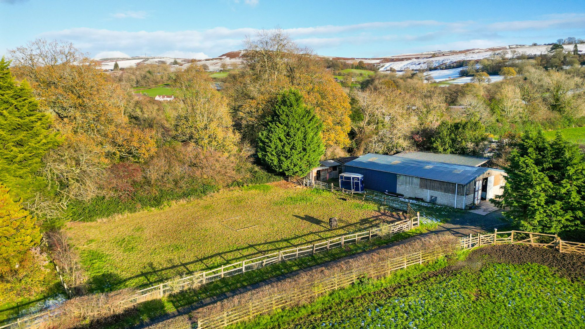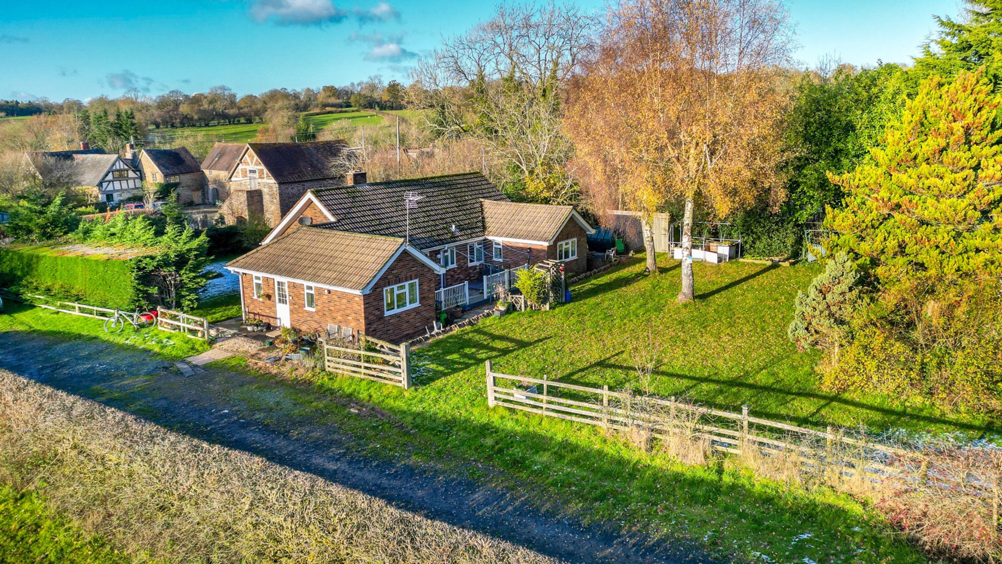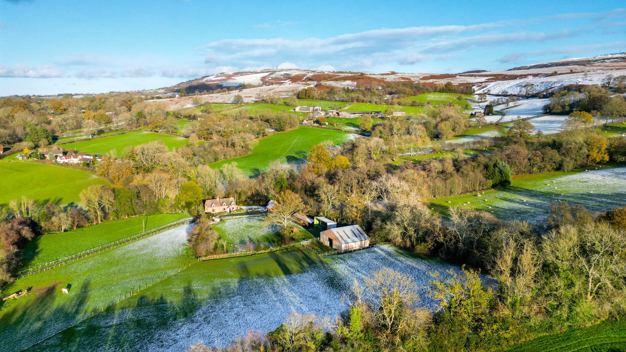 Occupying an idyllic and secluded setting on the edge of Clee St Margaret, Bush Farm Bungalow offers an exceptional opportunity for those with equestrian or smallholding interests. Approached through impressive wrought-iron gates and along a private tree-lined drive, the property sits centrally within approximately 20 acres of pasture, woodland, and agricultural buildings.