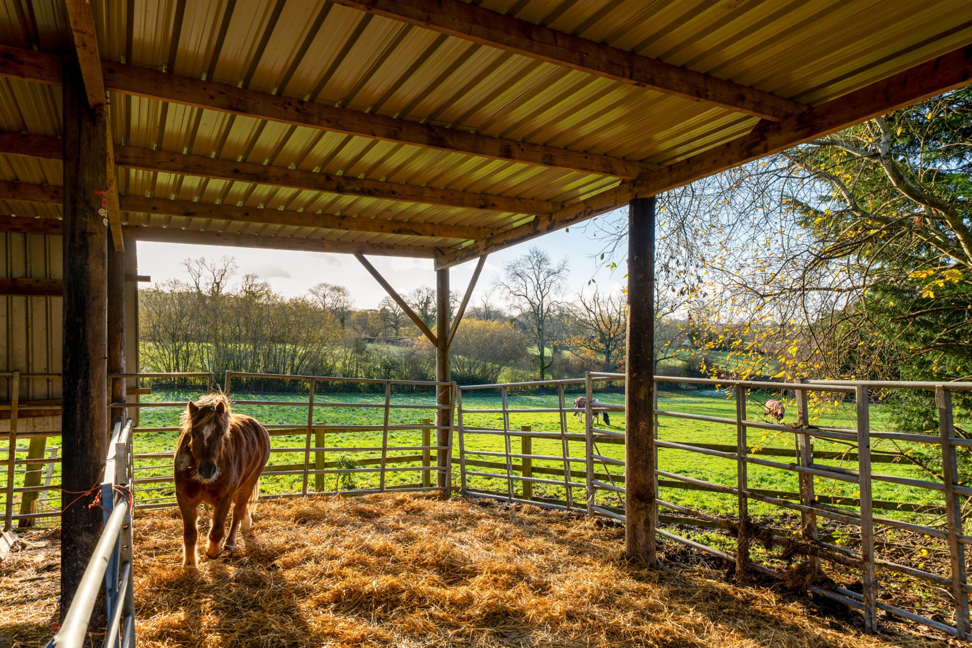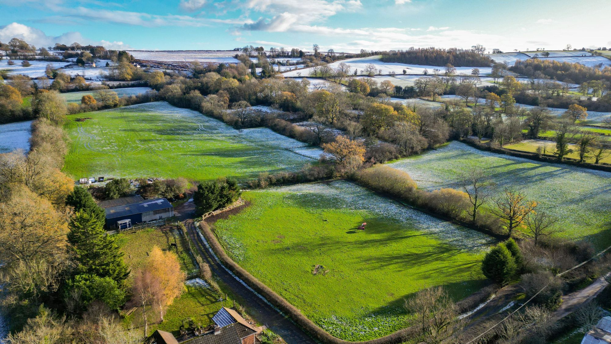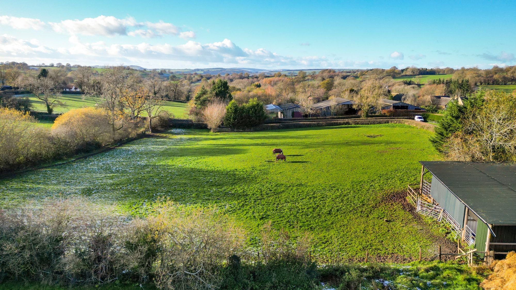 Occupying an idyllic and secluded setting on the edge of Clee St Margaret, Bush Farm Bungalow offers an exceptional opportunity for those with equestrian or smallholding interests. Approached through impressive wrought-iron gates and along a private tree-lined drive, the property sits centrally within approximately 20 acres of pasture, woodland, and agricultural buildings.