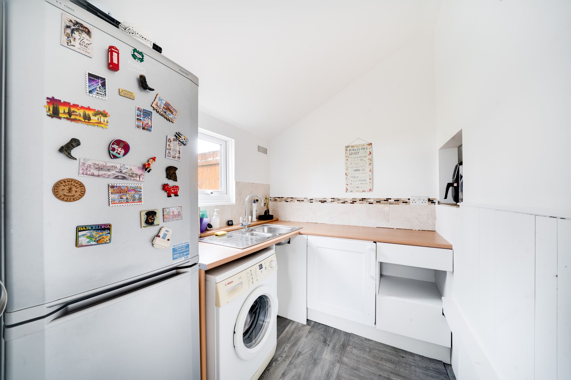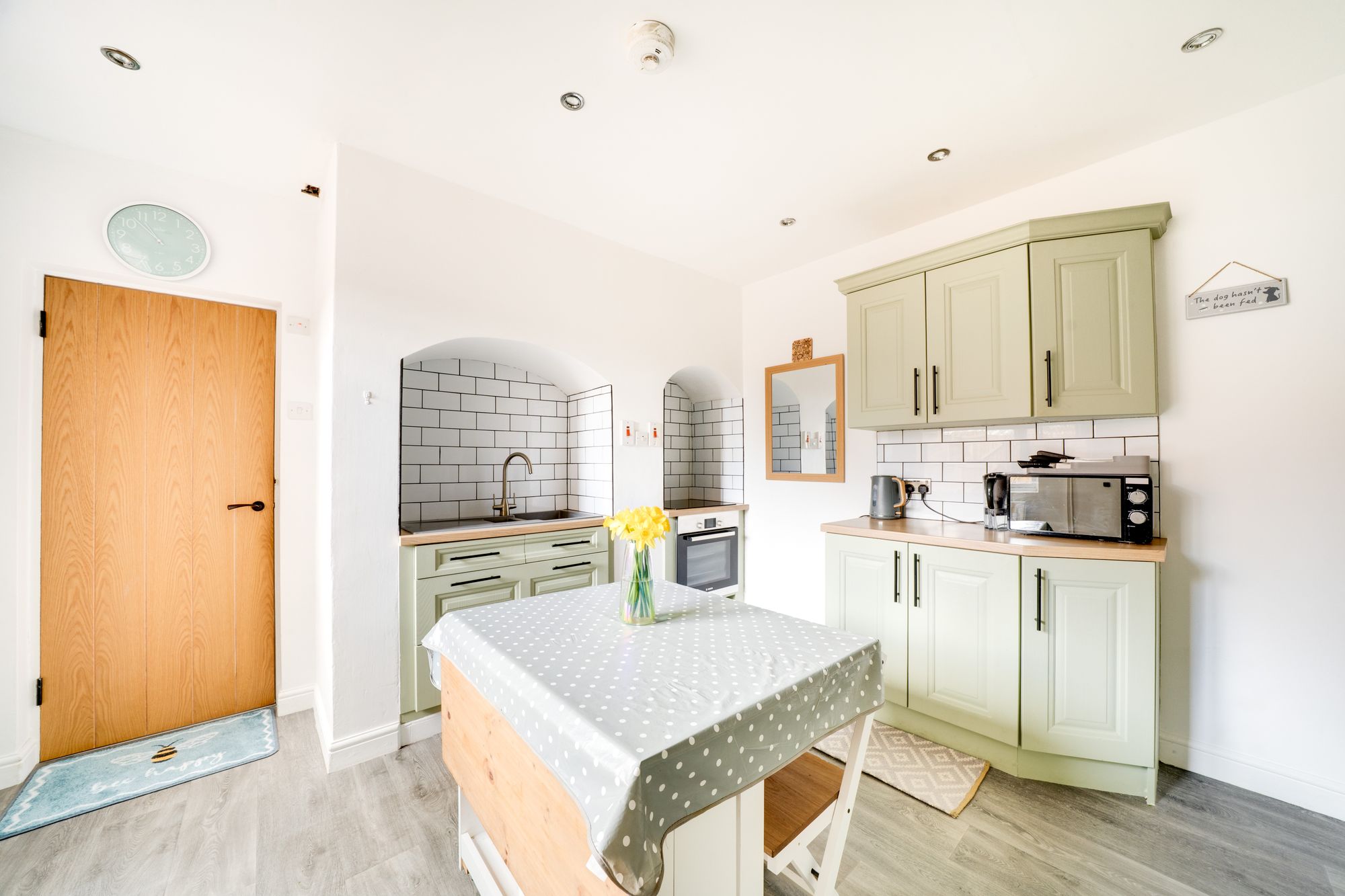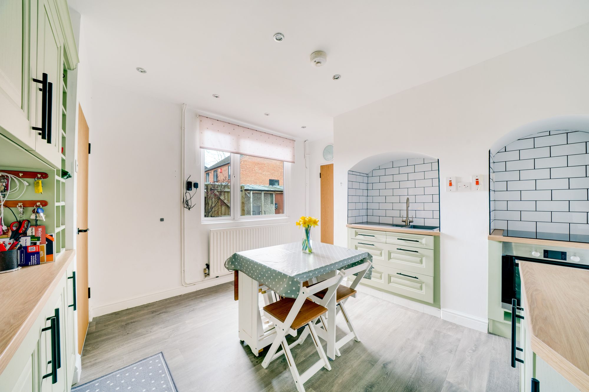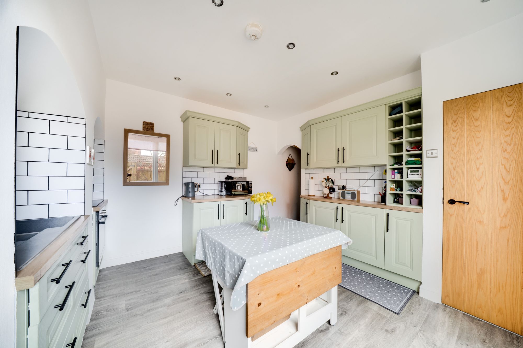 The kitchen has been beautifully updated in a modern style, featuring sleek units, quality fittings and a practical layout designed for both everyday living and hosting. A useful utility room sits just off the kitchen, adding further convenience and keeping household tasks neatly organised.