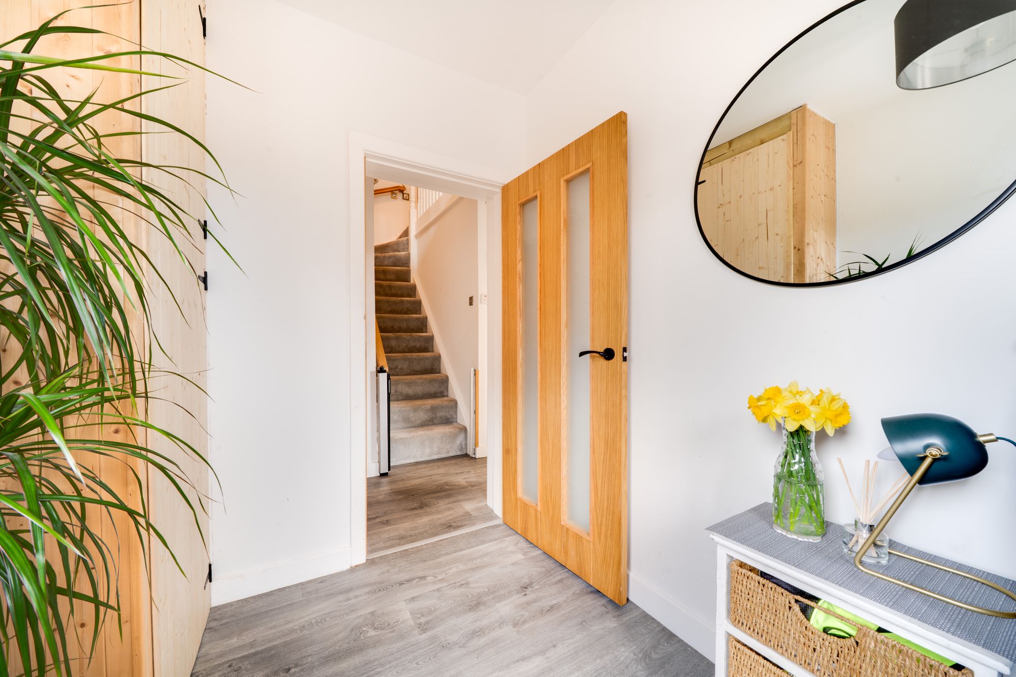 The property is approached via a spacious driveway to the front, providing ample off-road parking and a welcoming first impression. Stepping inside, you are greeted by an inviting entrance porch leading through to the main living accommodation.
