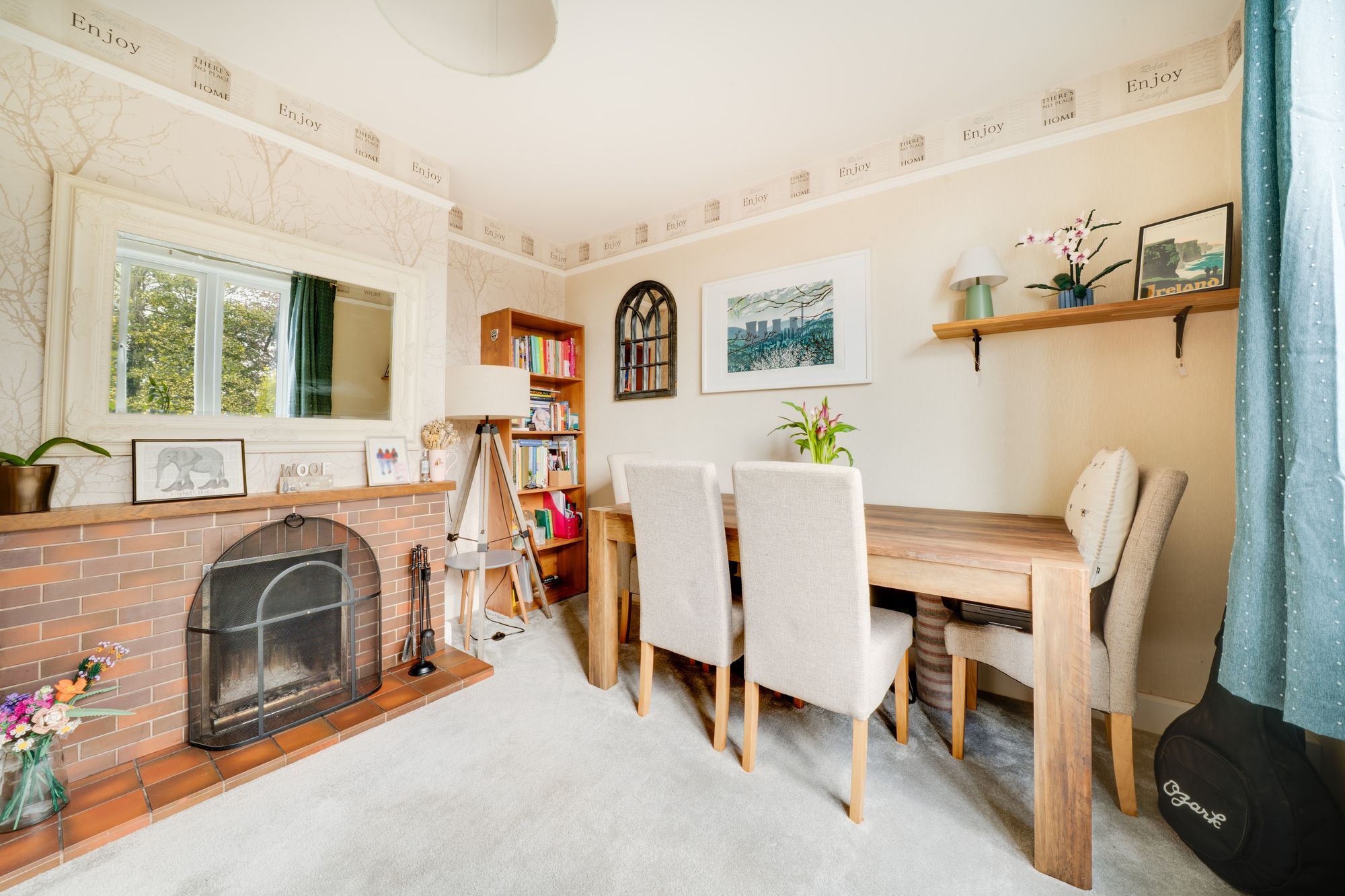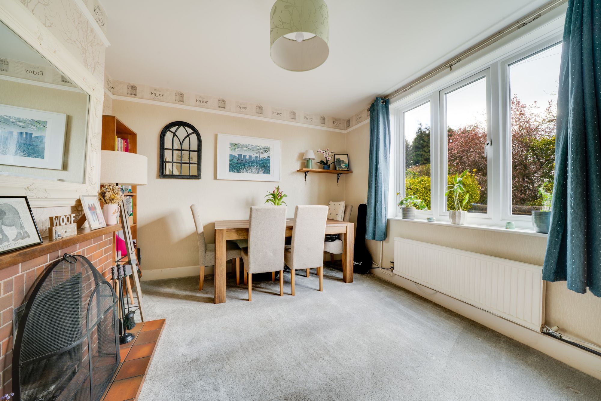 The lounge is a warm and cosy space, enhanced by a charming log burner that creates a real focal point and a perfect setting for relaxing evenings. This room flows naturally into a separate dining area, offering an excellent space for family meals and entertaining, with a pleasant outlook over the garden.