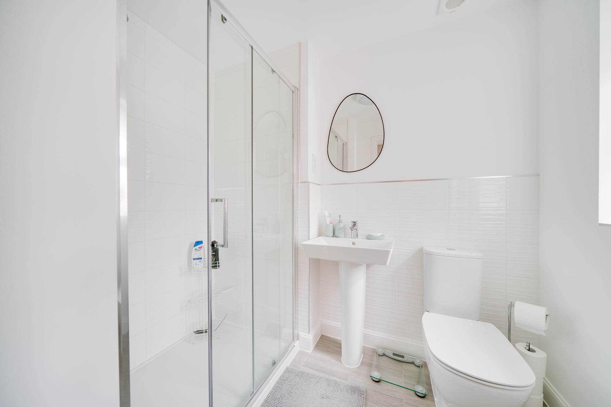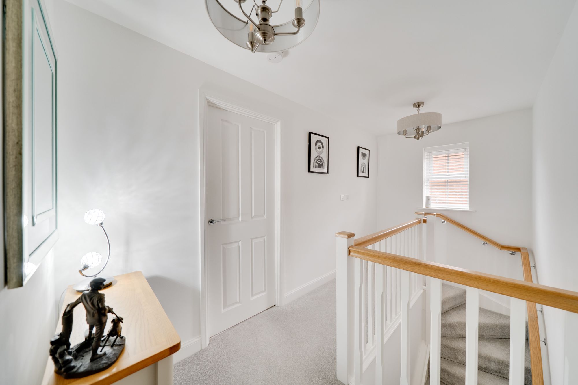Upstairs, the property continues to impress with four well-proportioned bedrooms, all tastefully decorated and ready to move straight into. The principal bedroom benefits from its own modern en-suite shower room, offering privacy and comfort. Bedrooms two and three are enhanced by fitted wardrobes, providing excellent built-in storage while maintaining clean, uncluttered lines. The fourth bedroom offers flexibility for use as a guest room, nursery or home office. A contemporary family bathroom serves the remaining bedrooms and completes the first floor accommodation.