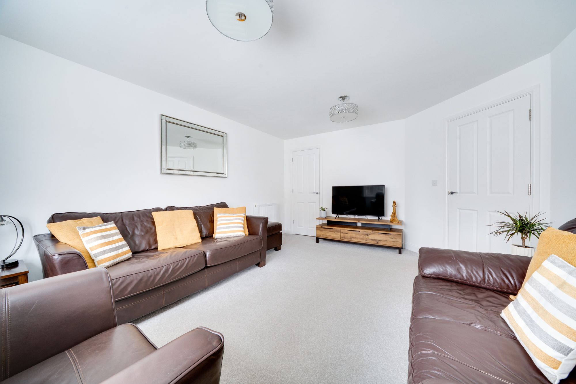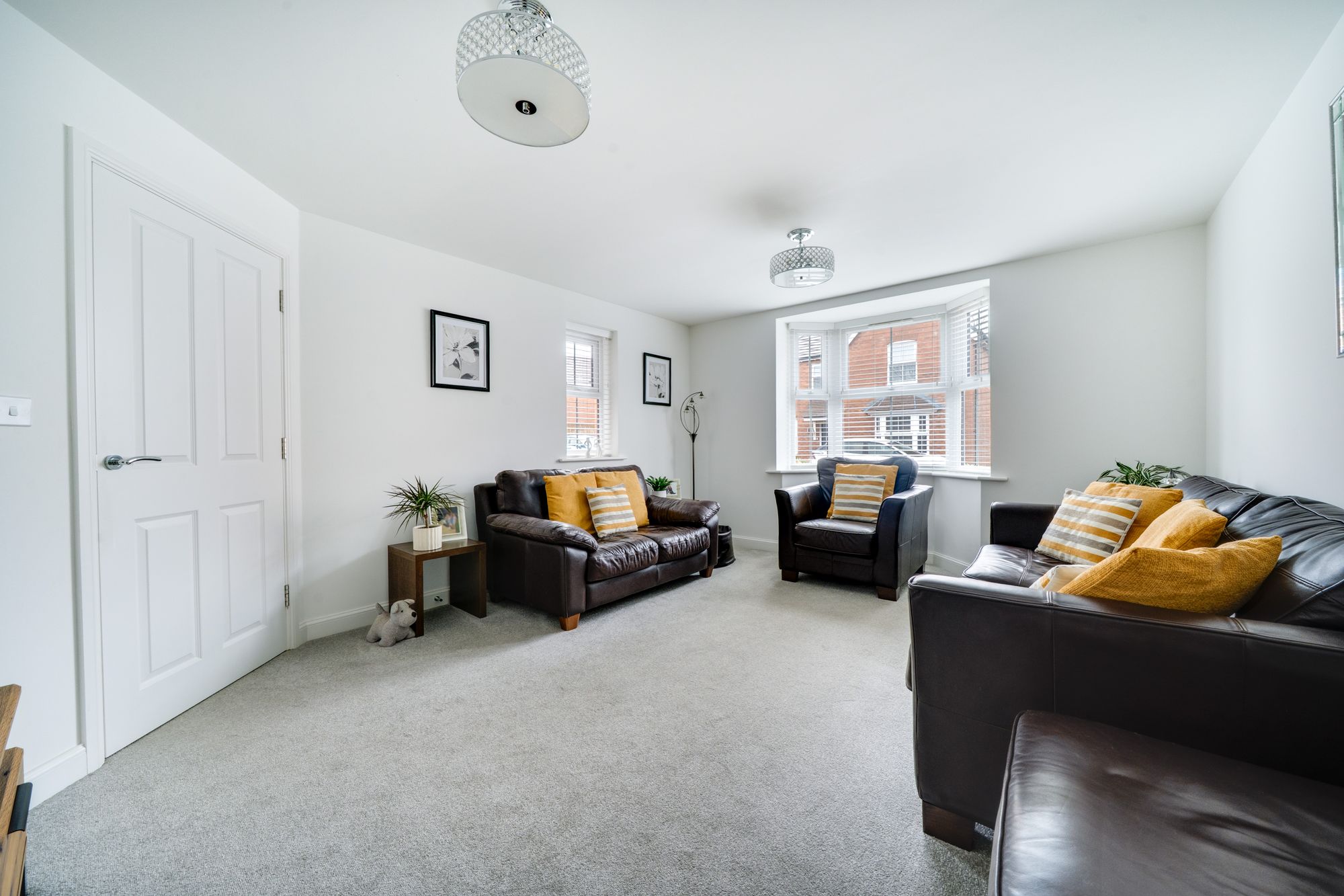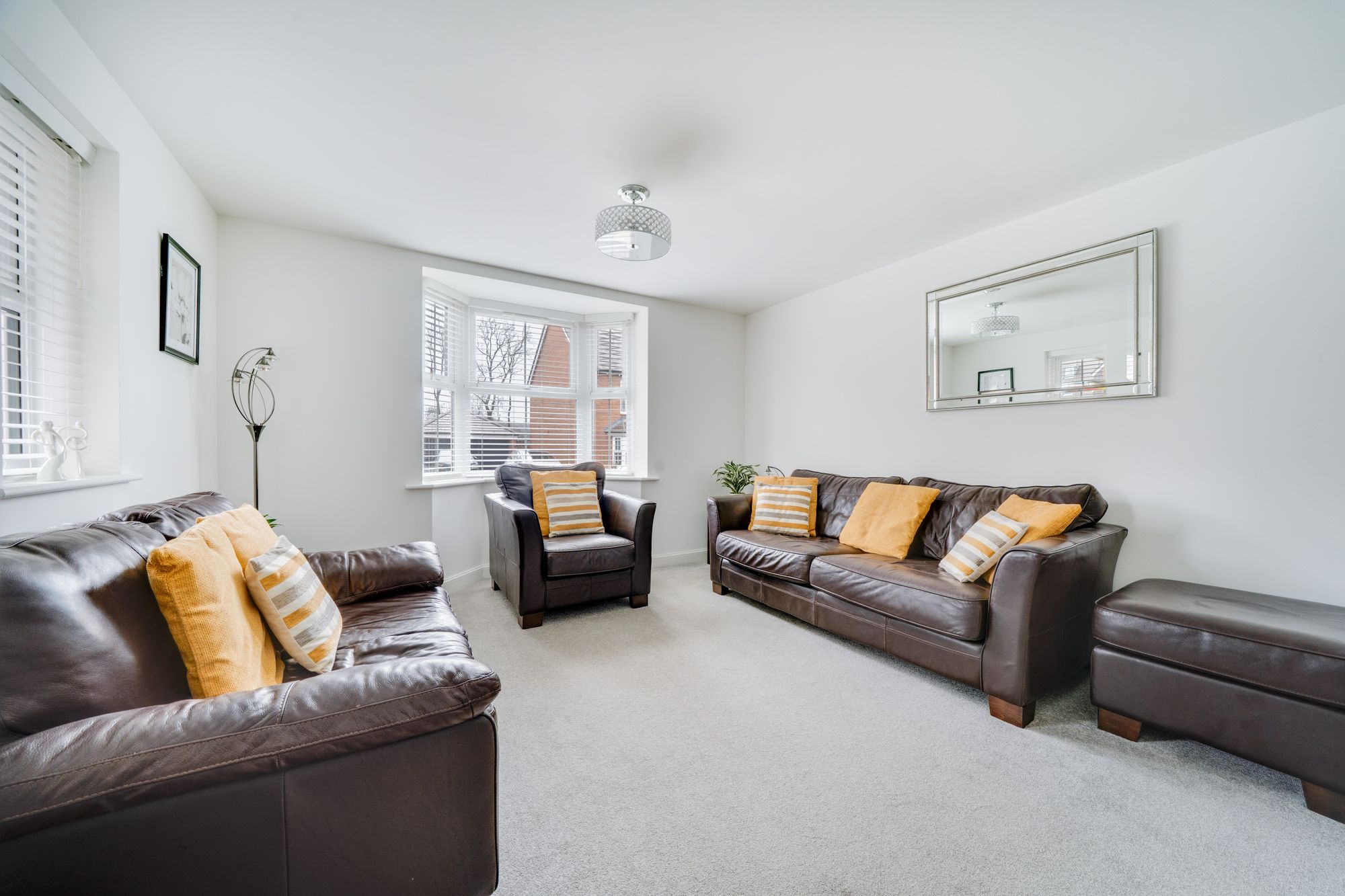 Inside, the welcoming entrance hall leads to a spacious and elegant lounge, beautifully decorated in a neutral décor that enhances the sense of light and space. The calming colour palette provides a versatile backdrop to suit a variety of interior styles, while the bay window adds character and warmth. This inviting reception room is ideal for both relaxed evenings and entertaining guests.