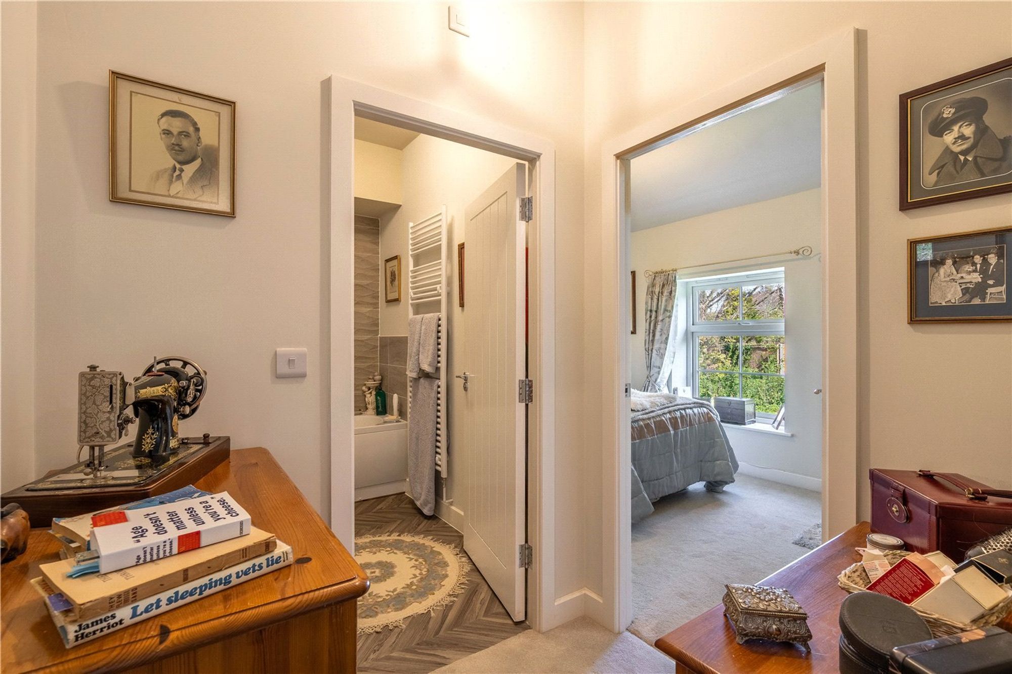 Upstairs, the layout continues to impress. The master bedroom offers a peaceful and well-proportioned retreat, while the second bedroom is perfect for children, guests, or as a home office. A beautifully fitted family bathroom with classic suite completes the upper level, all approached via a central landing that maintains the home's original charm.