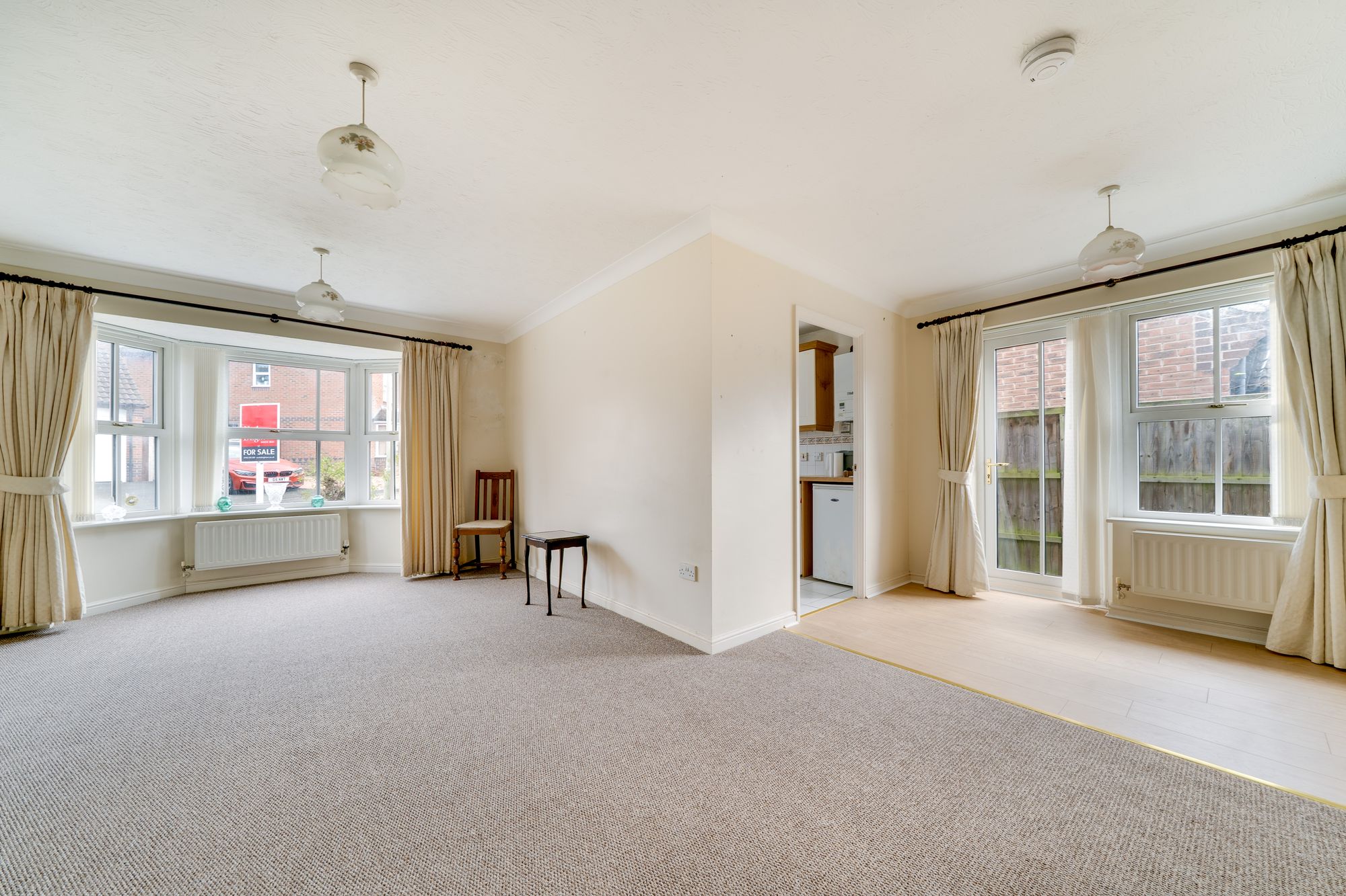 The property opens into a welcoming entrance hall, which leads through to a spacious and beautifully lit living/dining room. With its feature bay window and airy layout, this space is ideal for both relaxing and entertaining.