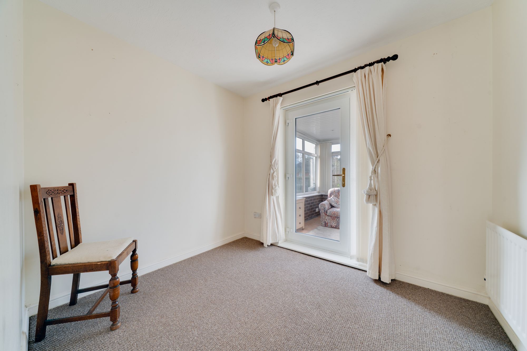 The bungalow includes two bedrooms, each offering comfortable accommodation and ample space for freestanding or fitted furniture. The centrally located bathroom is finished to a good standard and serves both bedrooms conveniently.