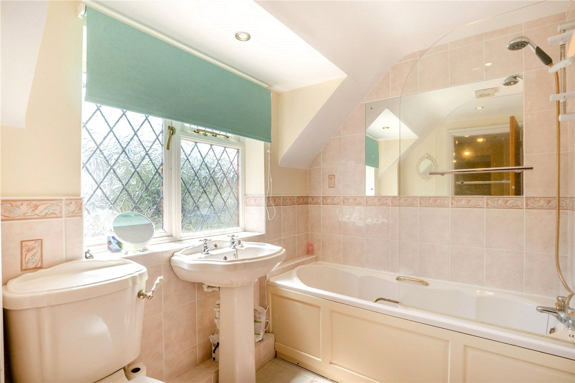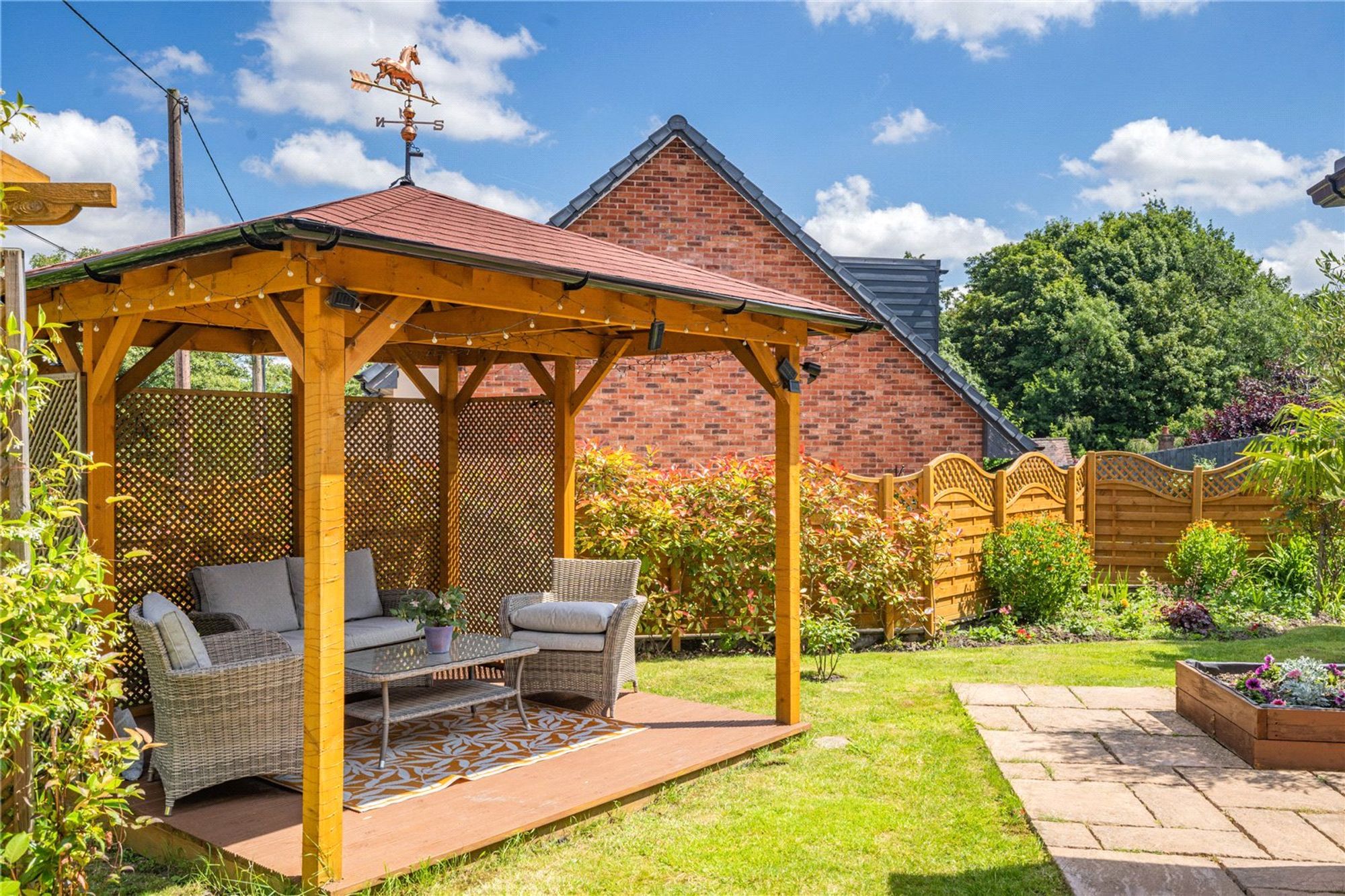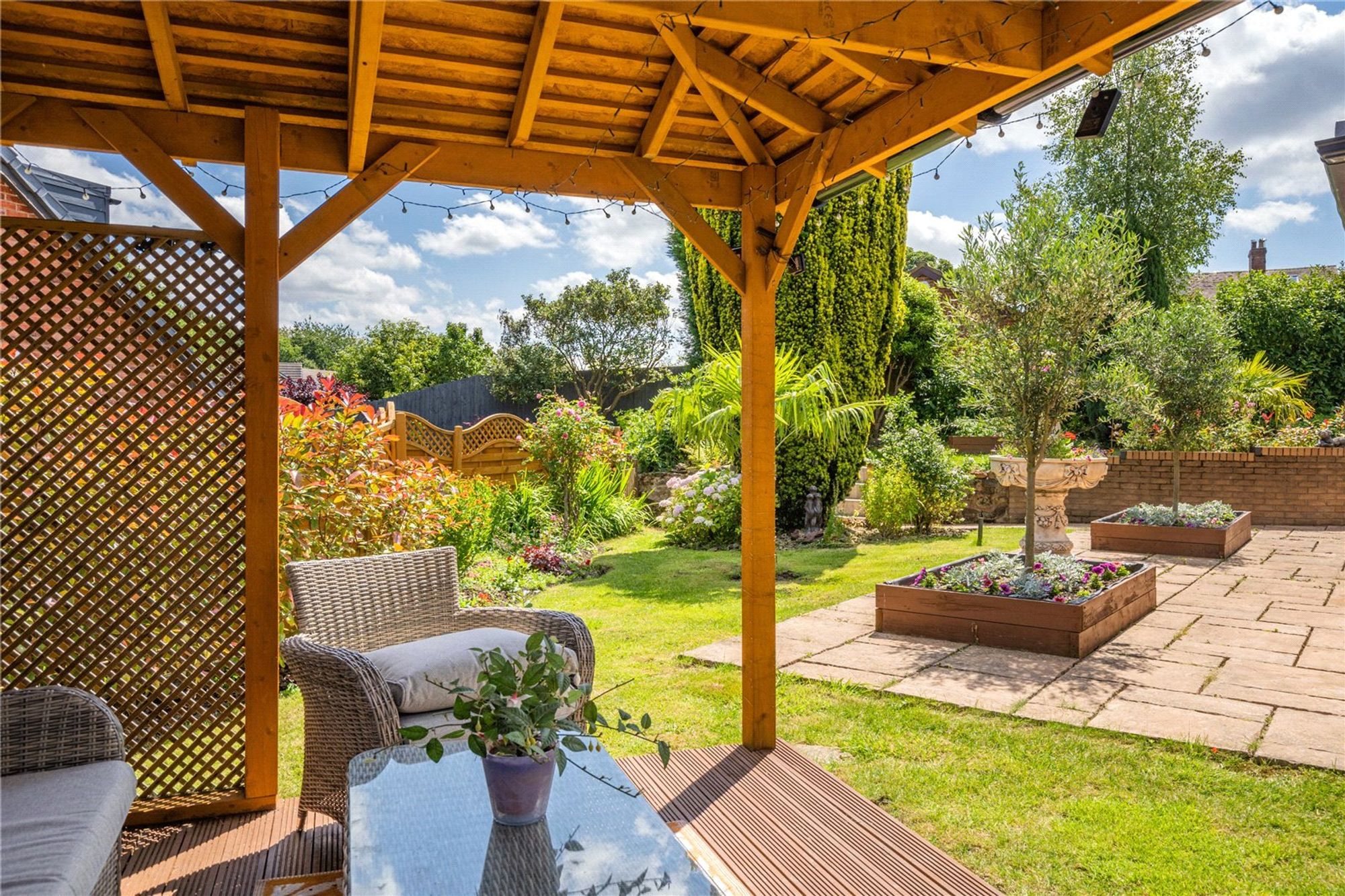 Outside, the driveway sits behind electric gates offering ample off road parking and a detached double garage. The lawned garden is beautifully maintained and wraps round the house. Throughout the garden are a variety of mature trees, bushes and shrubs. There is also a paved patio as well as a pergola above a decked area.