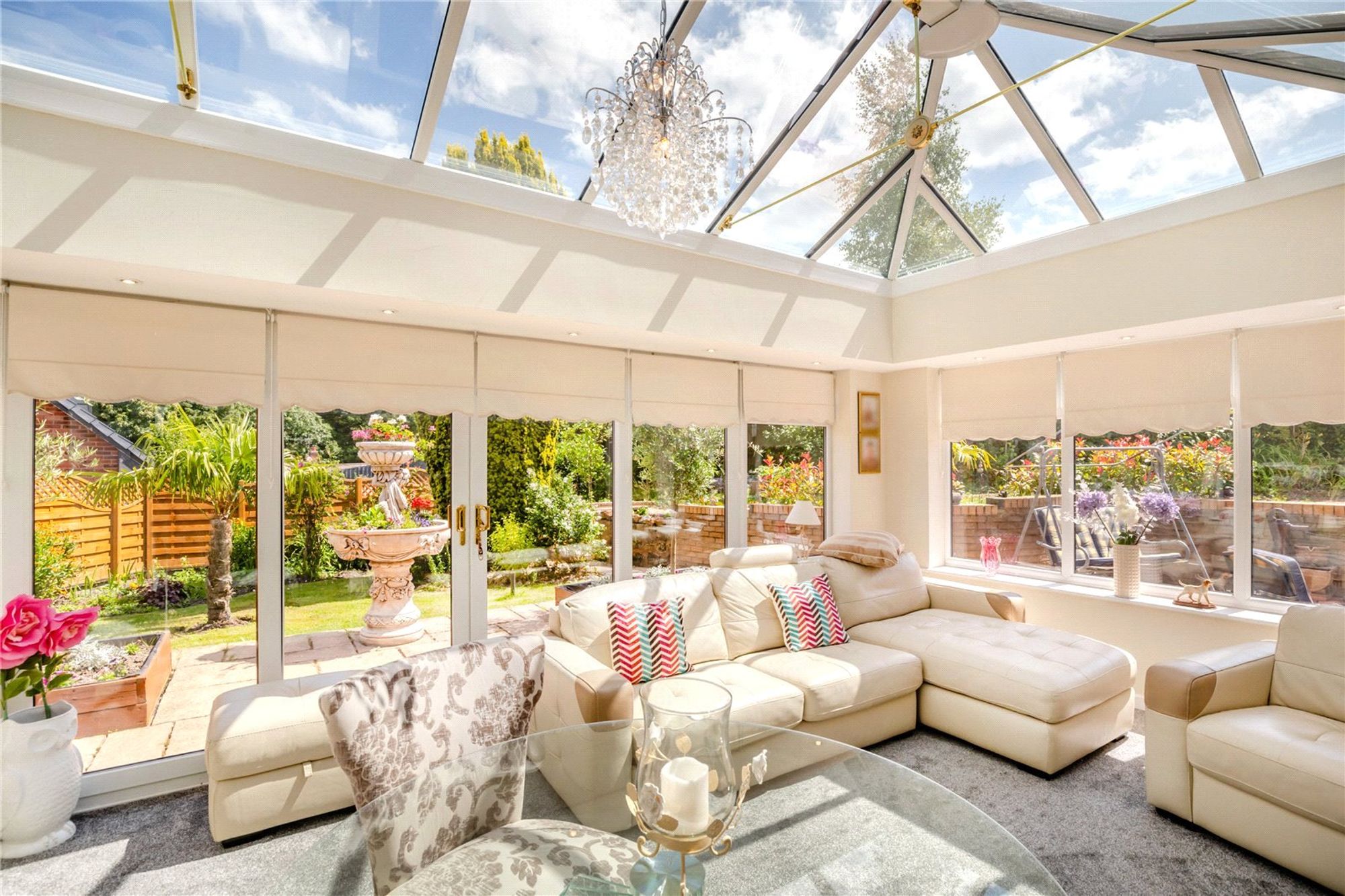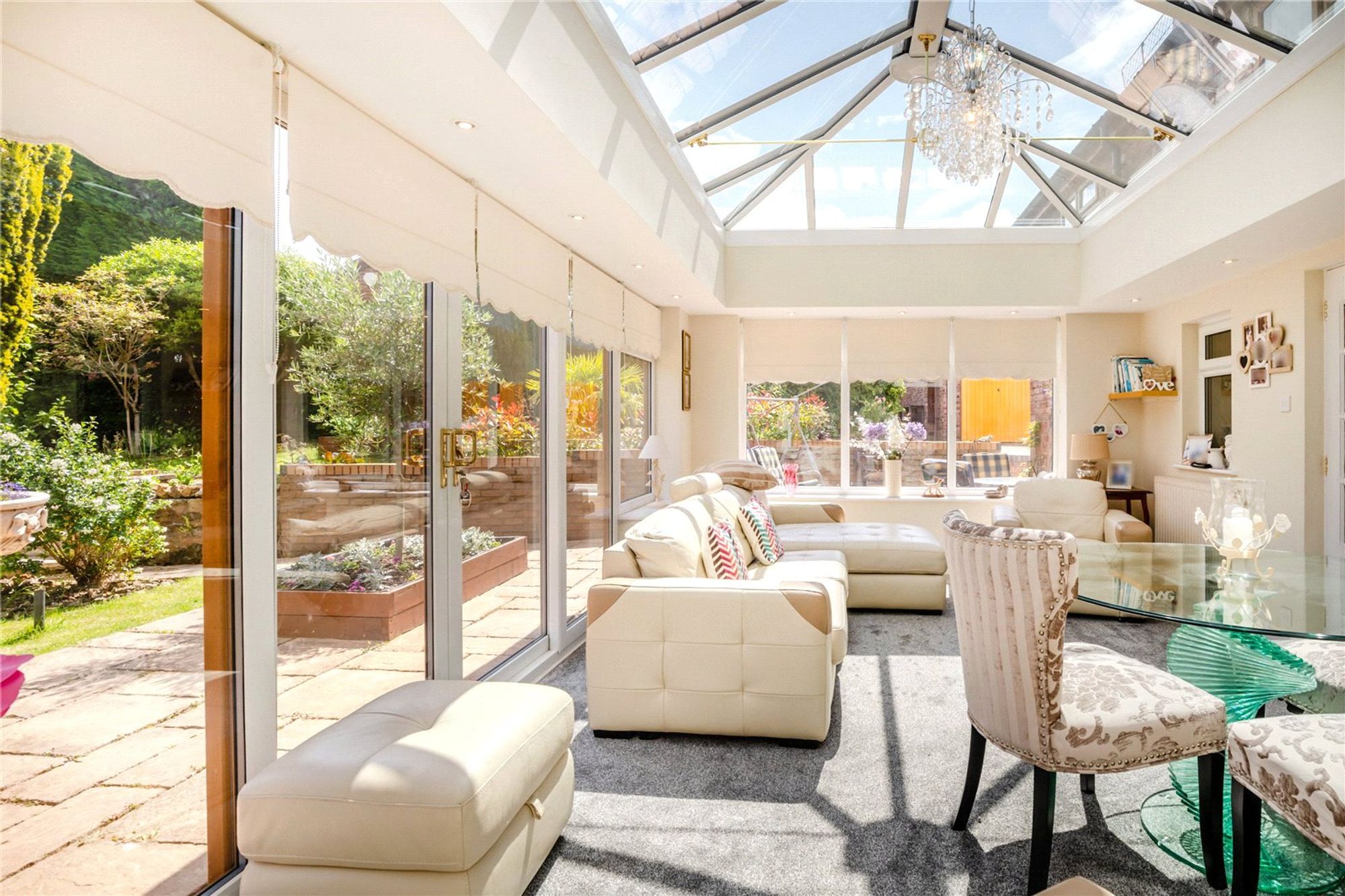Accommodation to the ground floor comprises an entrance porch/hallway leading into a handy utility room with WC and a home office/study. A door leads into the stunning open plan kitchen/dining room which is a great entertaining space. The modern kitchen is fully equipped and has plenty of high and low level units and cupboards. French doors lead into the beautiful orangery, which looks out onto the exquisite gardens. There is also a separate living room with dual aspect windows.