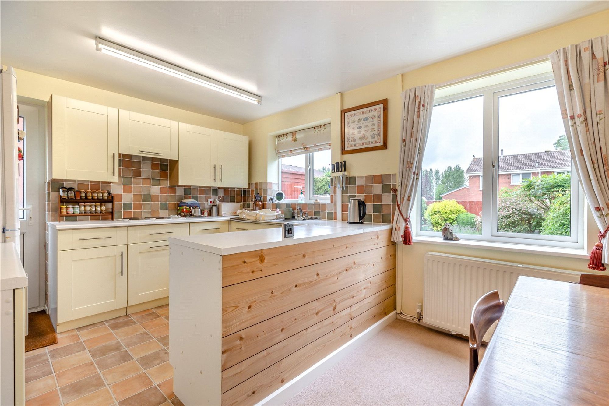 To the rear of the home, the contemporary kitchen/diner spans the full width of the house and offers a well-designed space for cooking and dining. With modern fittings and ample worktop space, it is ideally suited to family life and social occasions. A side door from the kitchen opens onto the driveway giving access to the rear garden, extending your living space outdoors.