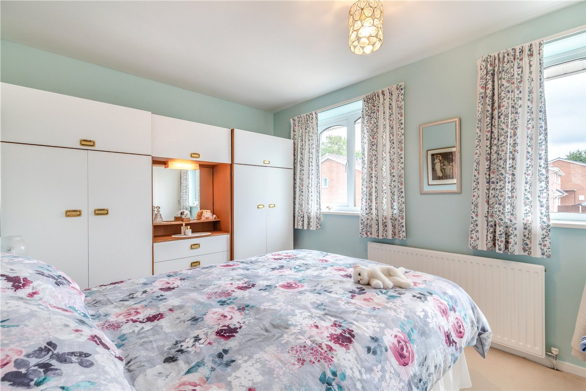 Upstairs, the home features three well-proportioned bedrooms. The main bedroom is generously sized and includes built-in storage, while the two further bedrooms offer flexibility for children, guests, or a home office. A stylish shower room completes the first floor, designed with practicality and comfort in mind.
