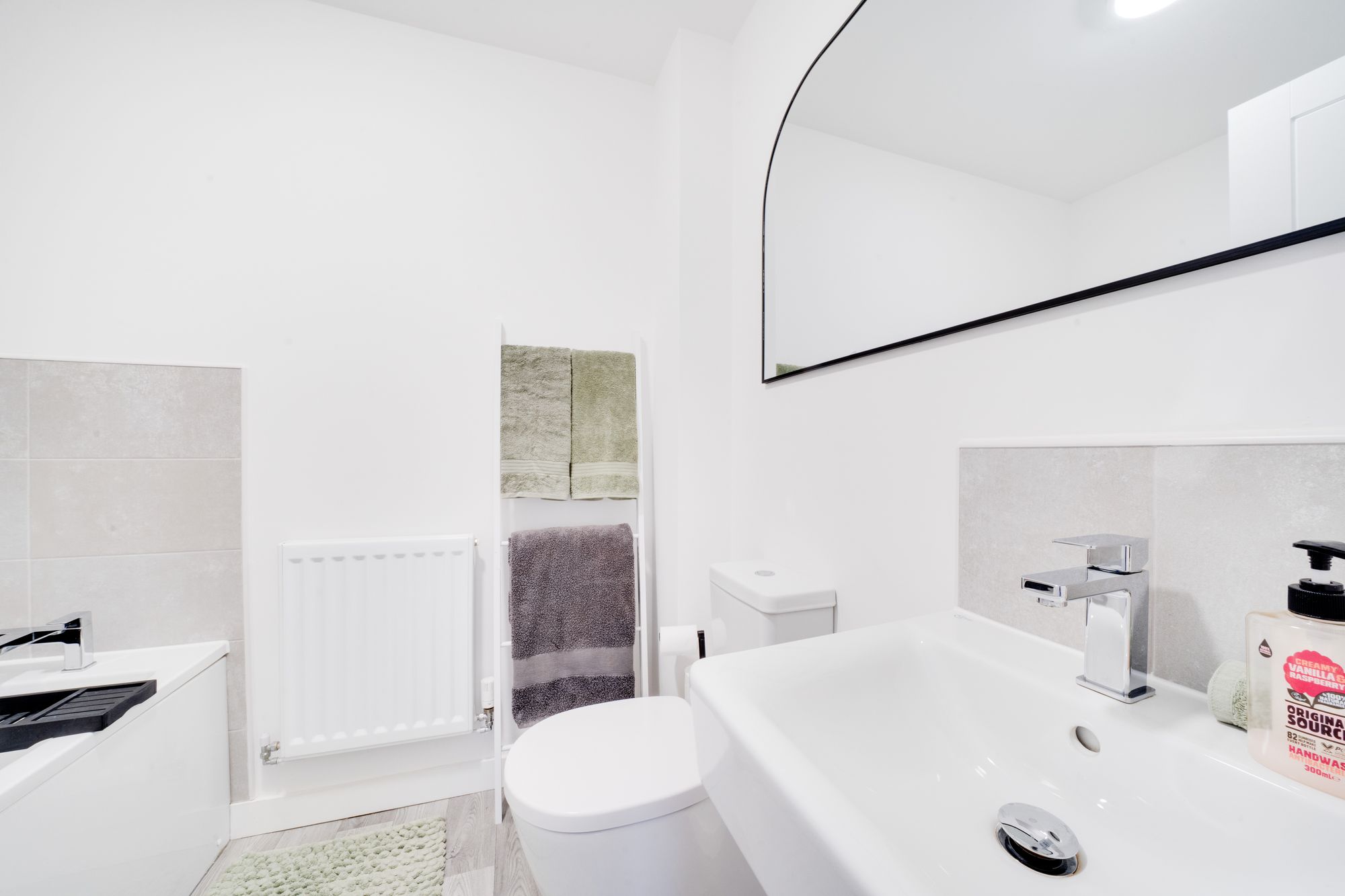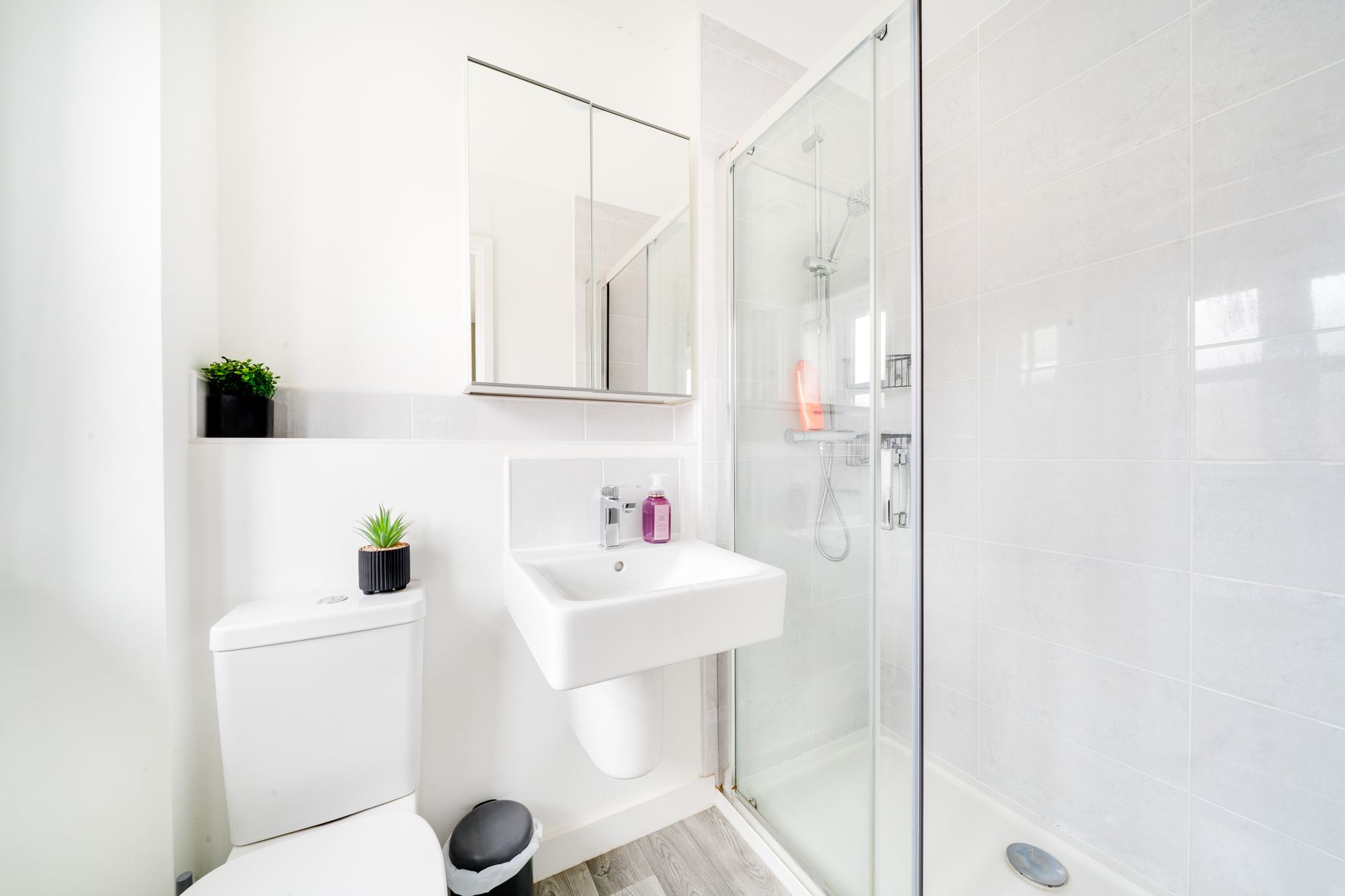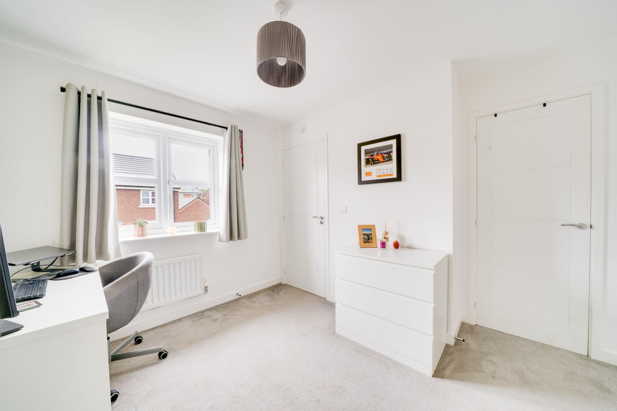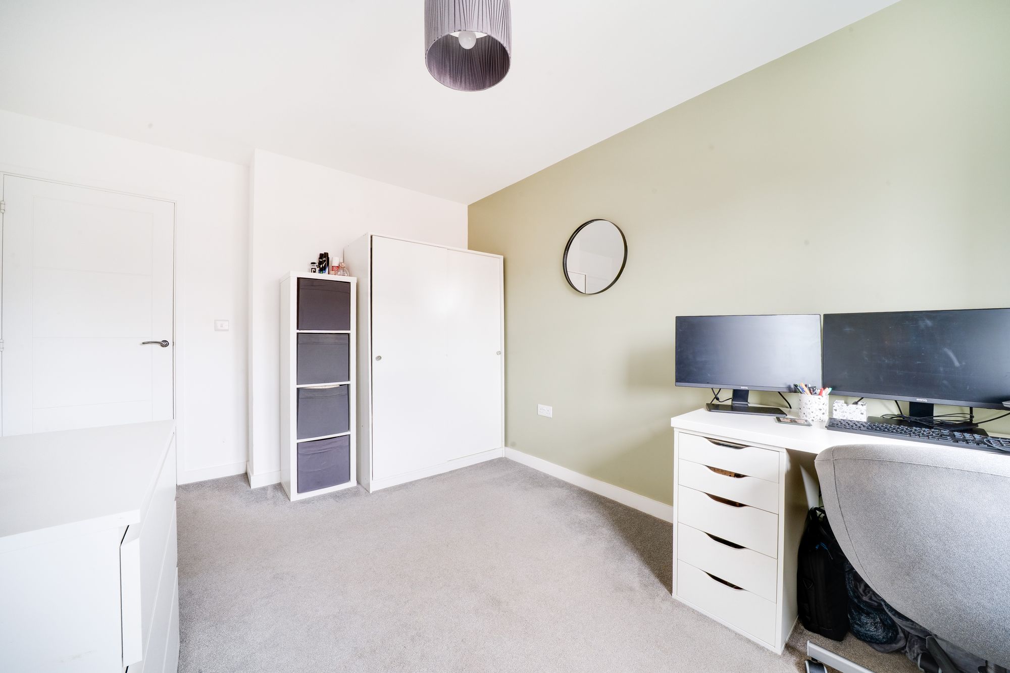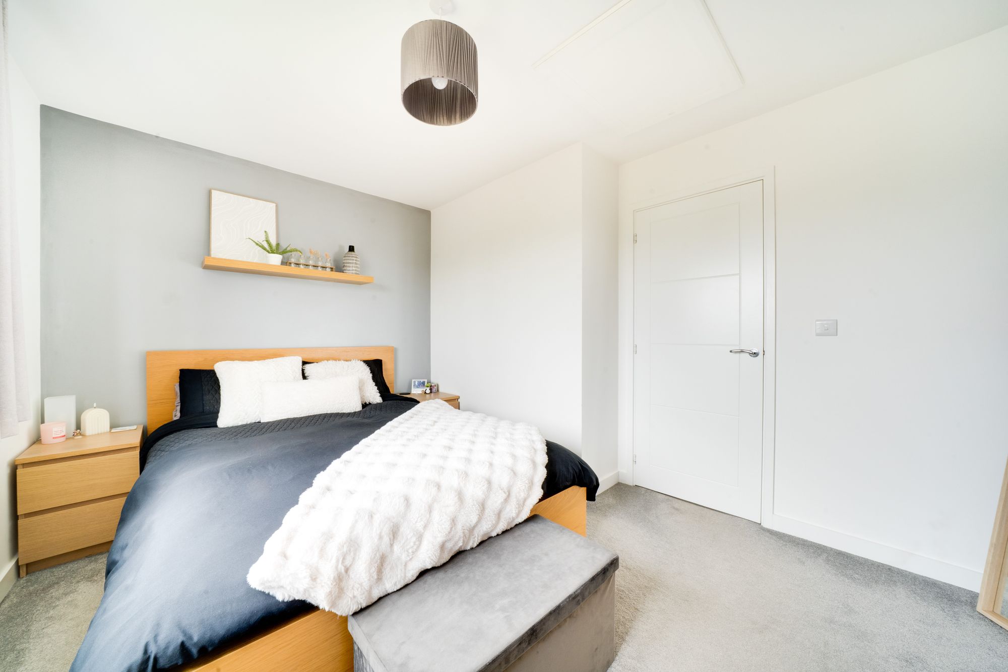 Upstairs, the first floor offers two well-proportioned bedrooms arranged around a central landing. The main bedroom benefits from its own en-suite shower room, providing added comfort and privacy, while the second bedroom is served by a modern family bathroom. The layout provides flexible accommodation suitable for sleeping space, guest use or a home office if required.