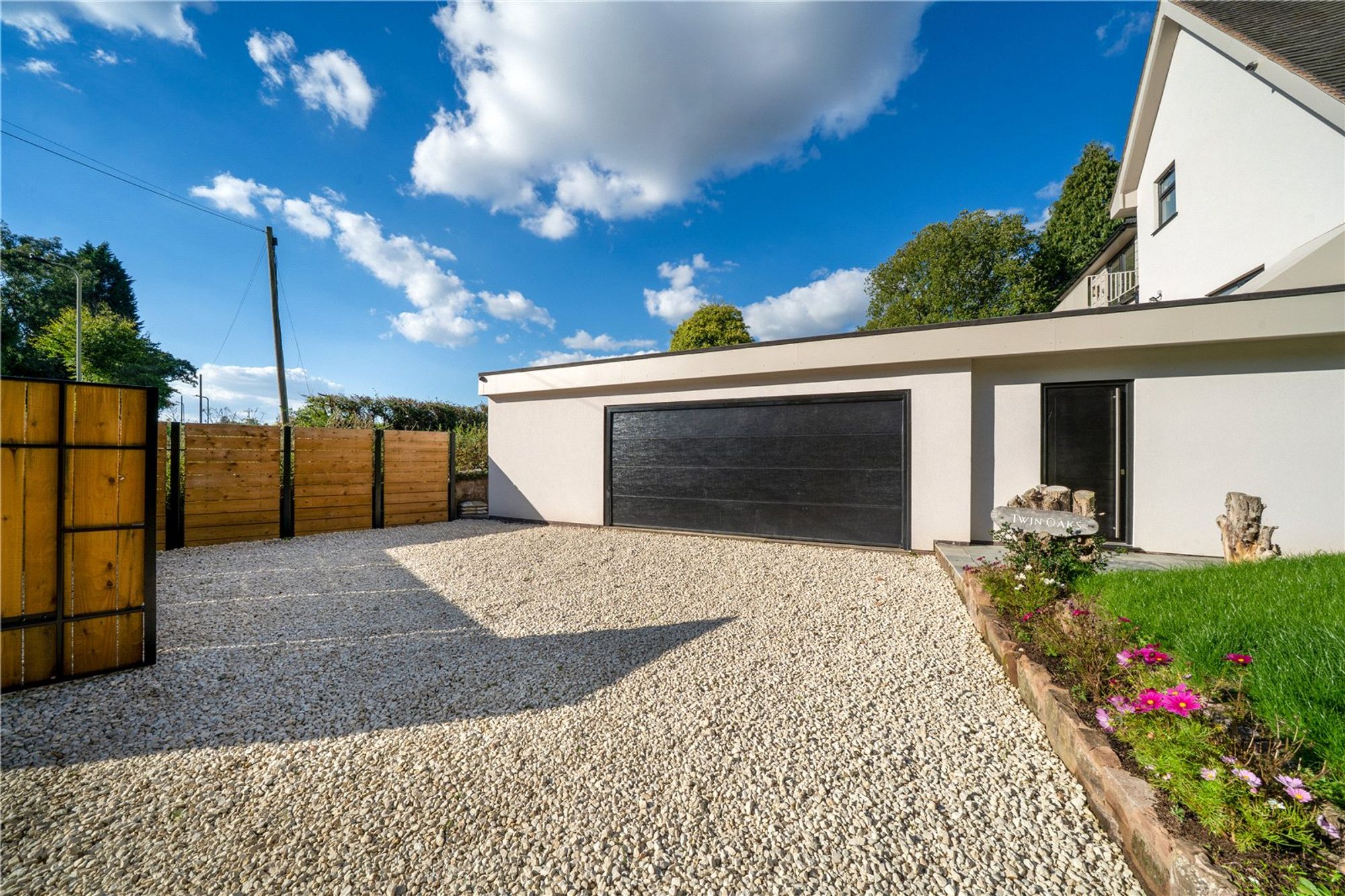 Externally, Twin Oaks is surrounded by landscaped gardens that offer both privacy and space for outdoor living. Whether entertaining guests or enjoying peaceful moments, the open countryside backdrop creates a setting that feels both inspiring and serene.
