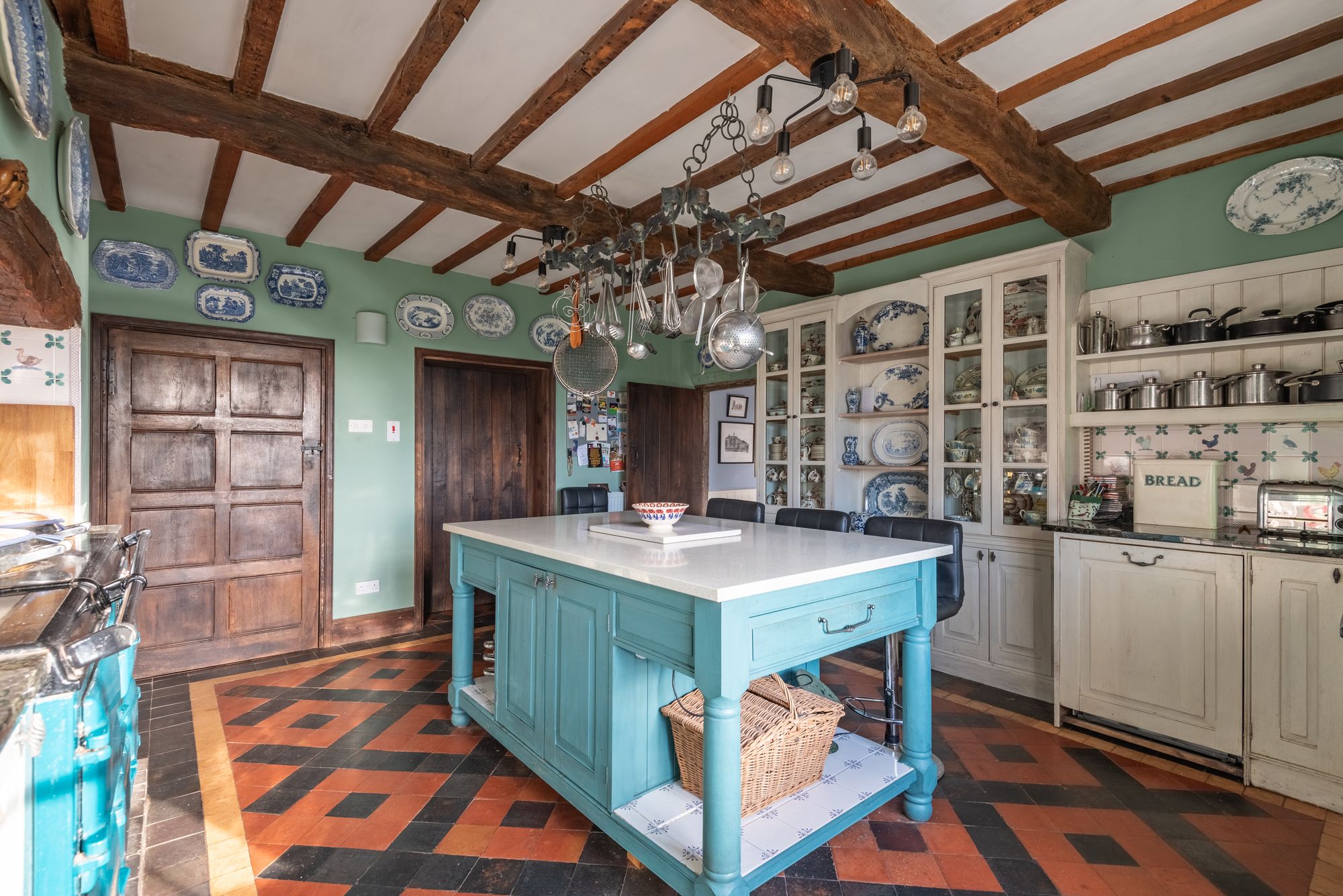 At the heart of the house lies a welcoming country kitchen, thoughtfully designed in keeping with its rural surroundings and centred around a traditional Aga. A pantry provides practical storage, while the adjoining breakfast room enjoys delightful views across the gardens and grounds, creating a charming and sociable everyday dining space. Further utility and ancillary rooms ensure the house functions effortlessly for modern living while preserving its period character.