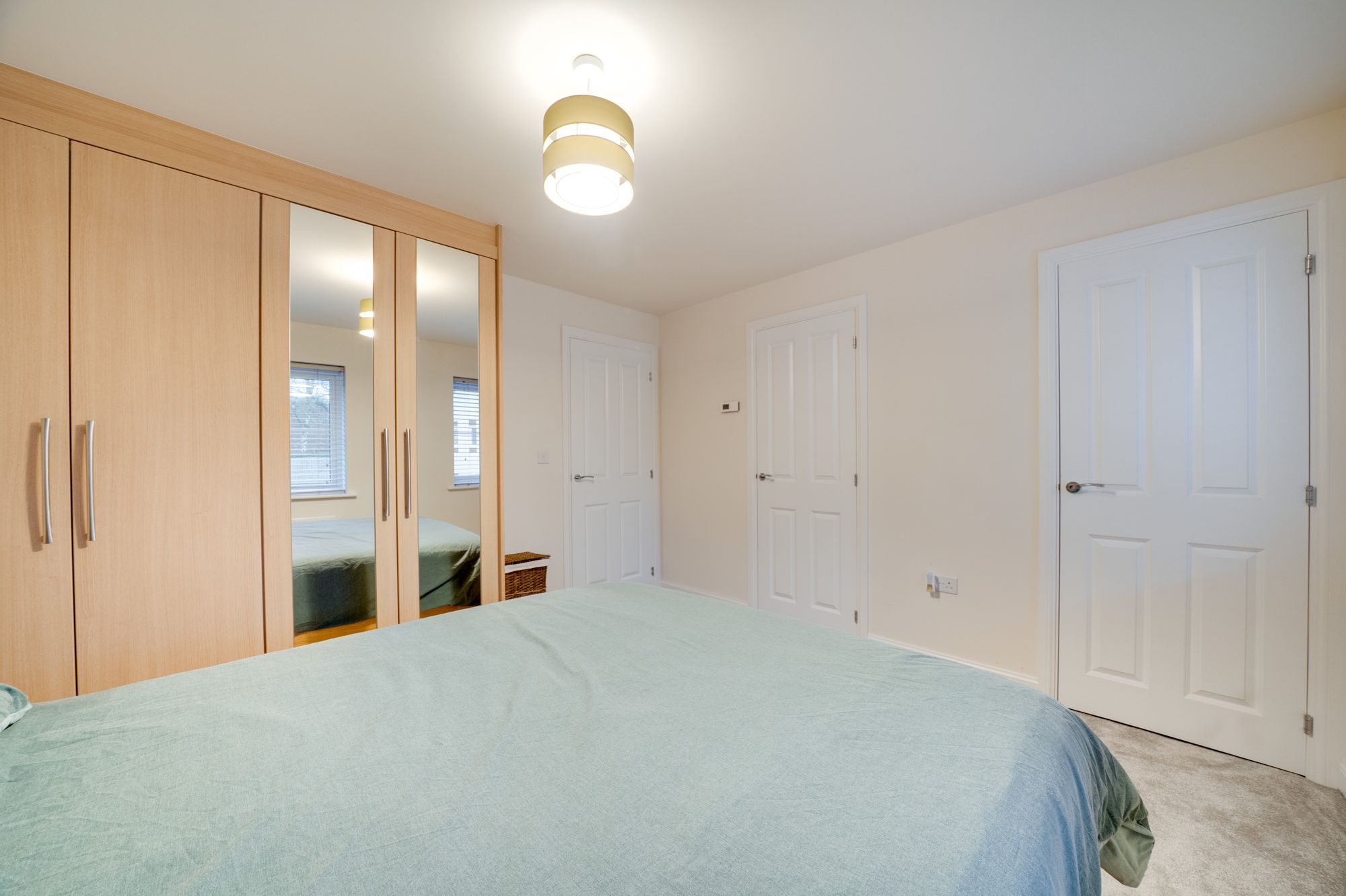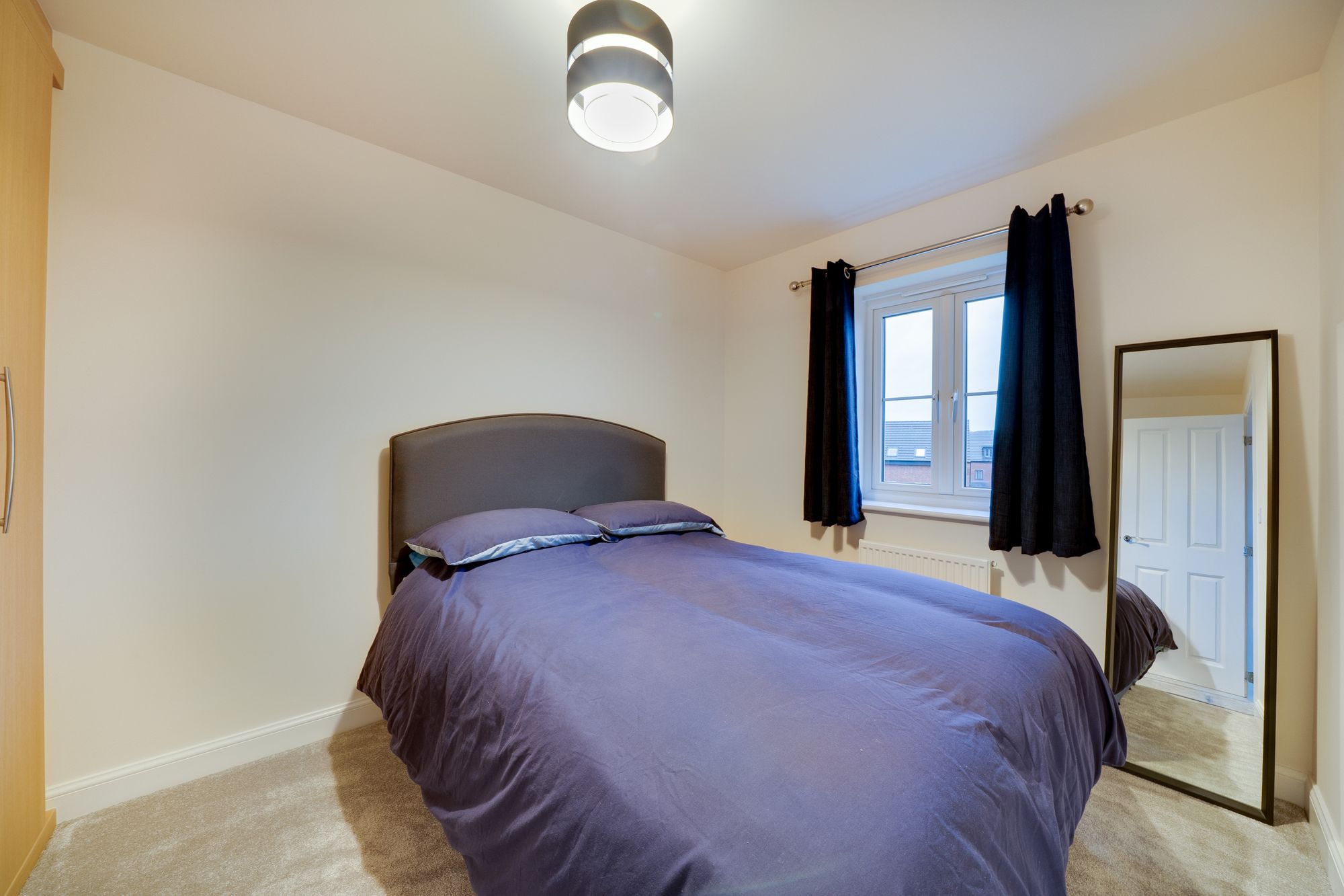 Upstairs, the first floor hosts two comfortable bedrooms with the additional benefit of built in wardrobes. The main bedroom spans the full width of the property and enjoys generous natural light, while the second bedroom is perfect for guests, children, or as a dedicated home office. The bathroom completes the accommodation with a modern suite and a fresh, contemporary feel.