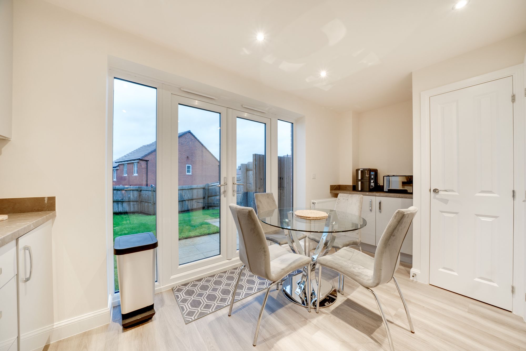 Stepping inside, you are greeted by a bright lounge which is an ideal setting for everyday living, with plenty of room to relax or entertain. Beyond, the kitchen sits at the rear, offering a pleasant outlook over the garden and direct access to the outside space. A ground-floor cloakroom adds further convenience for guests and busy households.